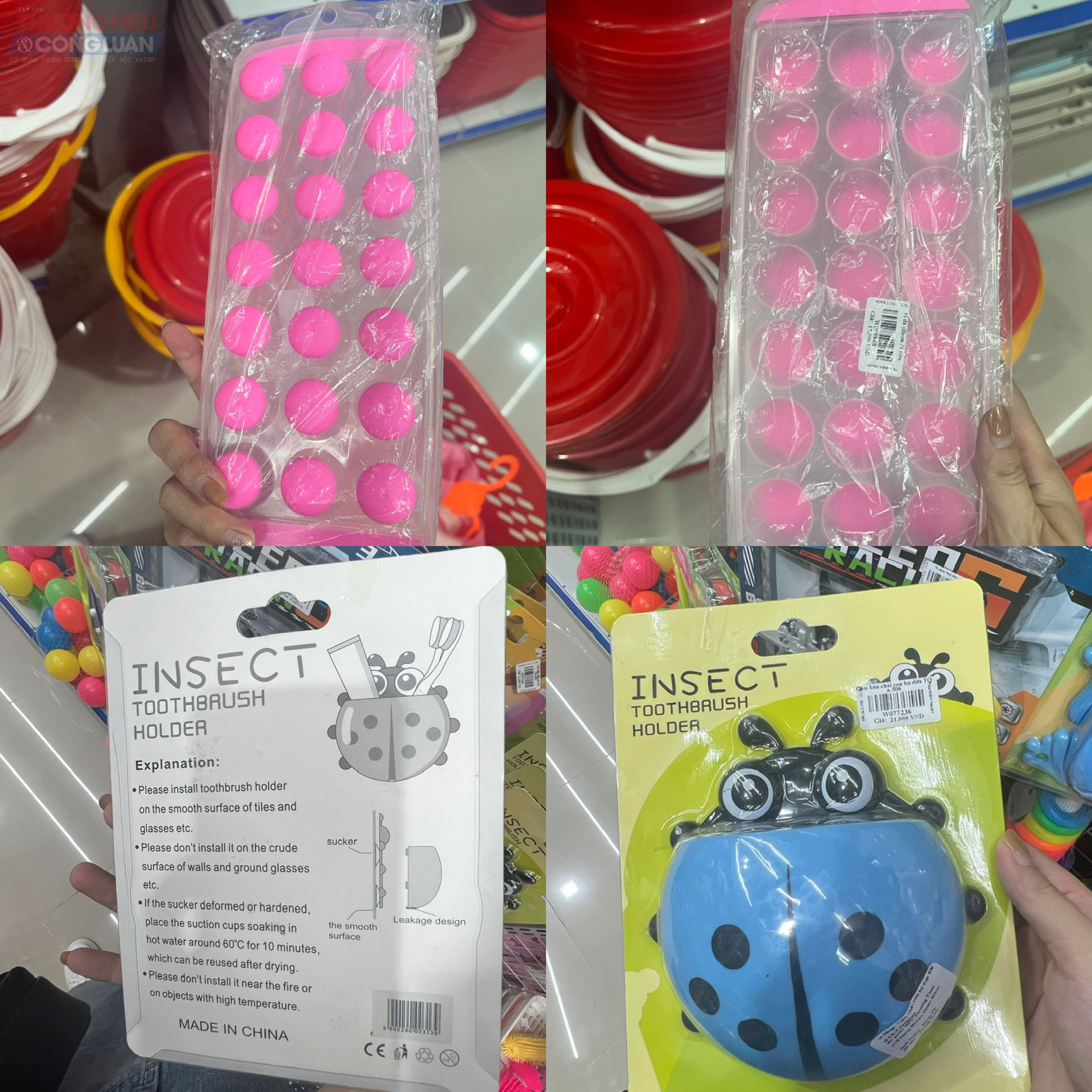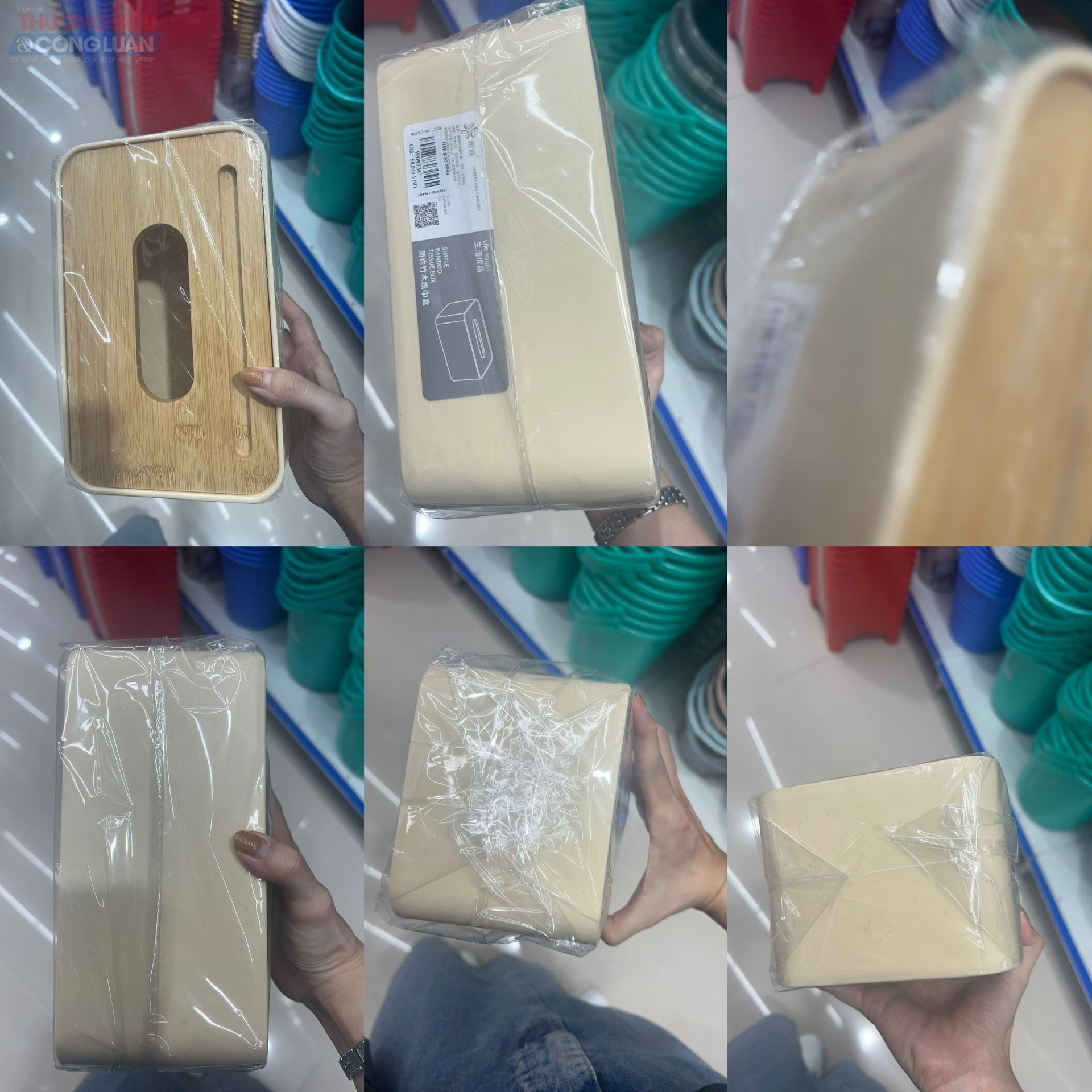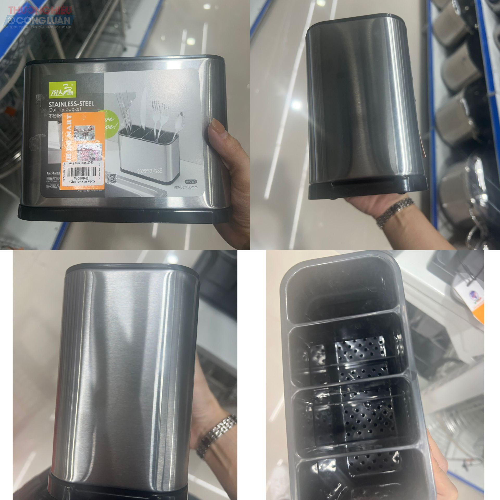 Tại khu vực bày bán đồ gia dụng, phần lớn các đồ gia dụng như bình nước, chổi quét, nồi, chảo, bát đĩa… đã được dán tem nhãn phụ Tiếng Việt đối với hàng hóa nhập khẩu. Tuy nhiên bên cạnh đó, cũng ghi nhận nhiều sản phẩm bao bì toàn chữ nước ngoài như Trung Quốc, Hàn Quốc… mà không có tem nhãn phụ Tiếng Việt, gây khó khăn cho người tiêu dùng trong việc tìm hiểu thông tin, mặt khác vi phạm quy định về tem nhãn hàng hóa.