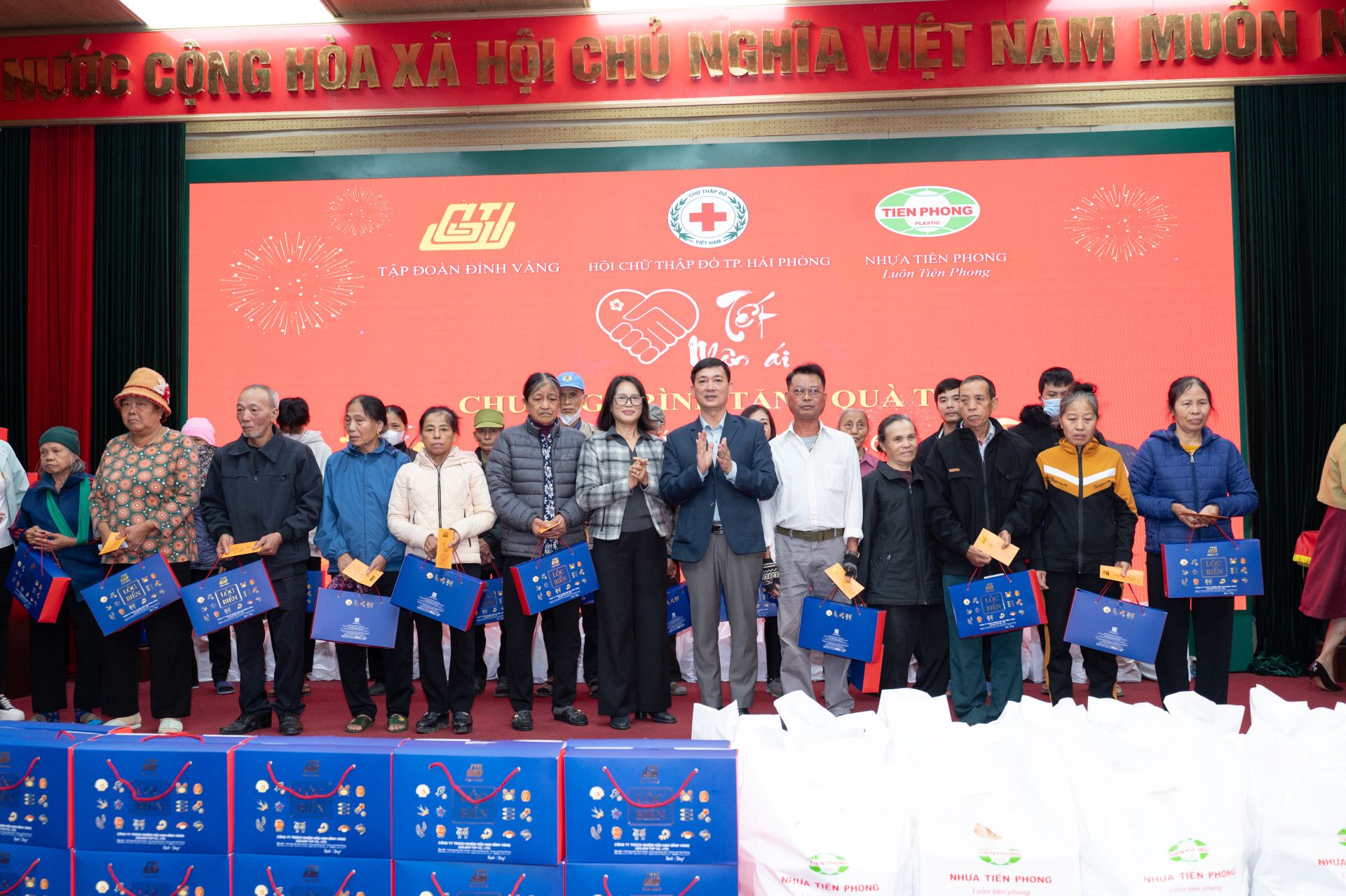 Theo đó, chương trình trao tặng 830 suất quà cho người dân ở các xã, phường: Hòa Bình (100 suất quà), Vĩnh Bảo (130 suất quà), Vĩnh Am (50 suất quà), Tiên Lãng (100 suất quà), An Lão (100 suất quà), An Khánh (50 suất quà), Hưng Đạo (50 suất quà), Dương Kinh (100 suất quà) và Đông Hải (100 suất quà). Mỗi suất quà trị giá từ 600- 650 nghìn đồng, gồm tiền mặt và nhiều mặt hàng thiết yếu do các đơn vị tài trợ dành tâm huyết chọn lựa và trao tặng như ruốc cá hồi, tép sấy khô, miến, dầu gió Thái Lan…