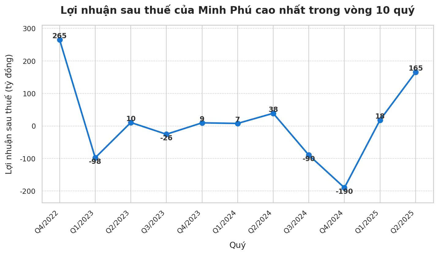 Kết quả, lợi nhuận sau thuế của công ty trong quý 2/2025 đã tăng vọt 329% từ 38 tỷ đồng lên 165 tỷ đồng, cao nhất trong vòng 10 quý.