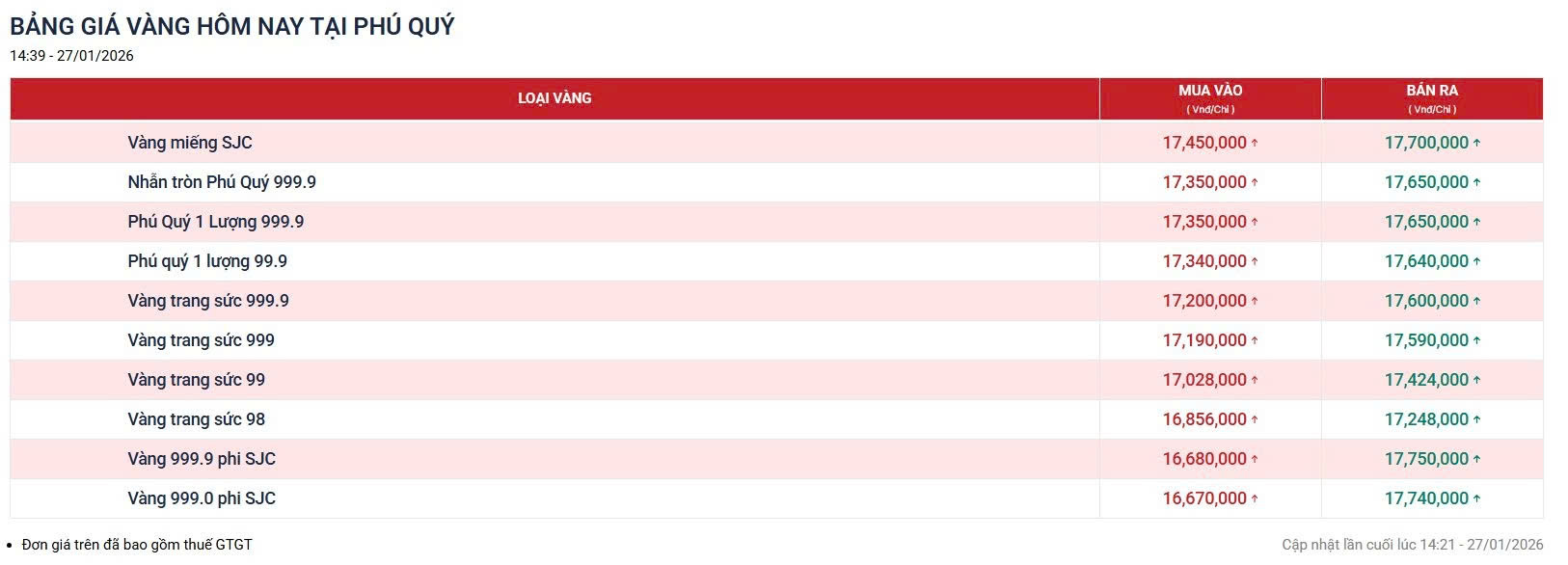 Đối với thị trường vàng, diễn biến giá cả cũng ghi nhận sự phân hóa đáng kể giữa các đơn vị kinh doanh trong nước. Trong khi giá vàng thế giới vượt mốc 5.047 USD/ounce, Phú Quý hiện duy trì mức niêm yết vàng miếng SJC với 174,5 triệu đồng/lượng chiều mua vào và 17,7 triệu đồng/lượng chiều bán ra.