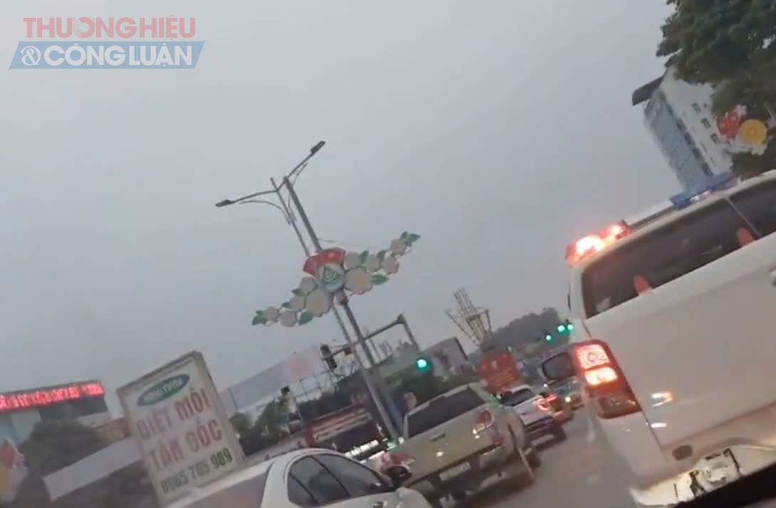 Cán bộ Phòng Cảnh sát giao thông (Công an tỉnh Thái Nguyên) sử dụng xe chuyên dụng mở đường, hỗ trợ taxi chở người bệnh đau tim di chuyển khẩn cấp đến bệnh viện