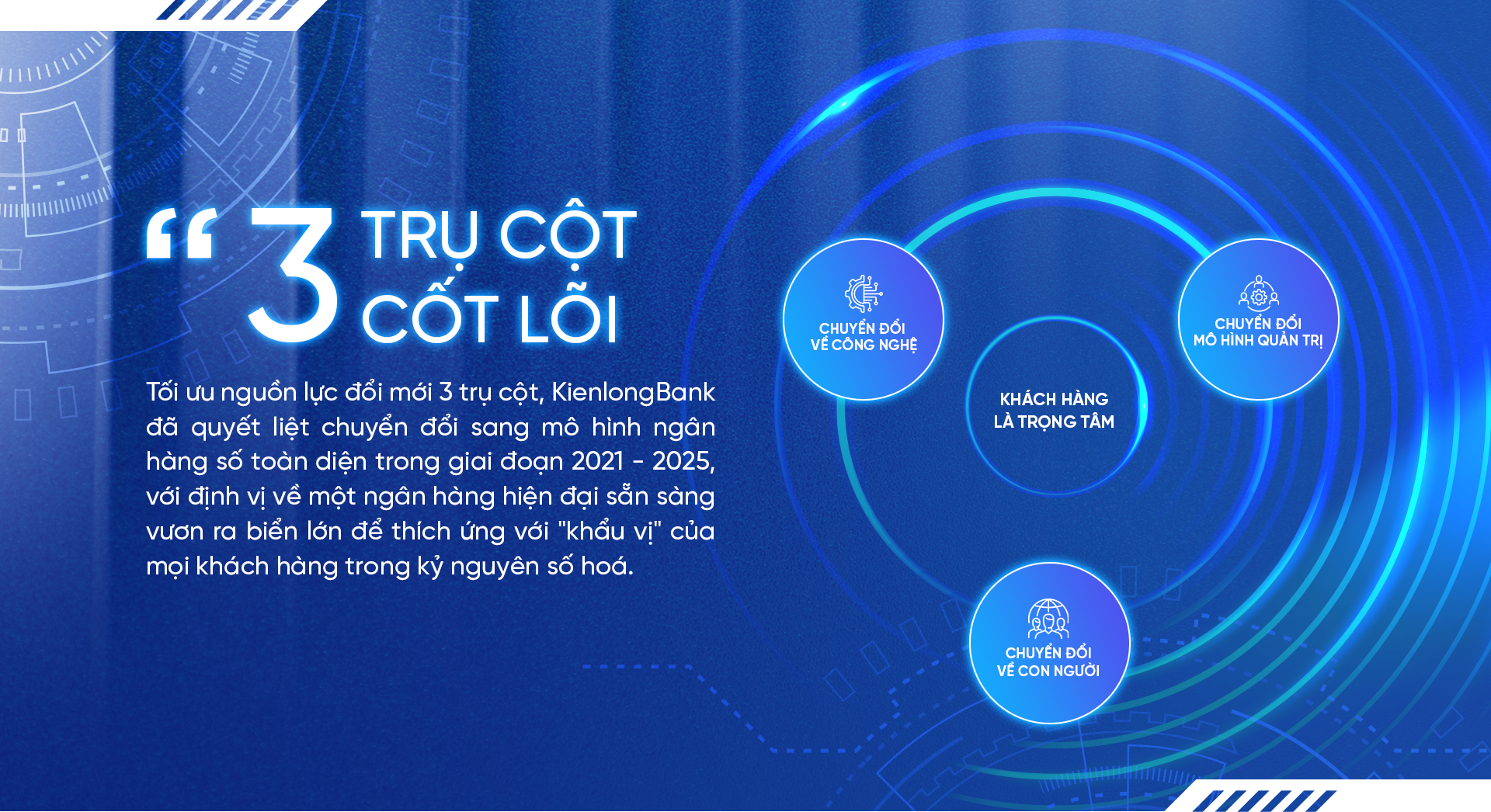 Việc đầu tư có chiều sâu, thay đổi về chất với trọng tâm hướng tới 3 trụ cột phát triển: Chuyển đổi về công nghệ; Chuyển đổi về mô hình quản trị; Chuyển đổi về con người là định hướng được vạch rõ trong Chiến lược phát triển đến năm 2025 của KienlongBank.
