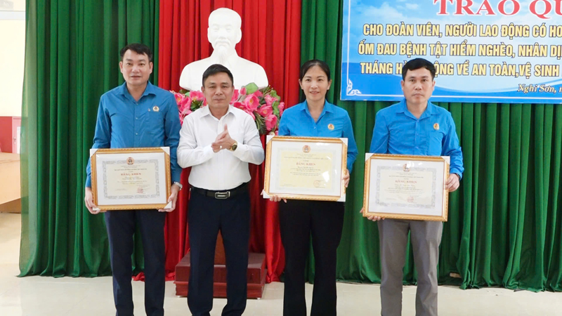 Cũng tại buổi lễ, Liên đoàn Lao động thị xã đã trao Bằng khen của Tổng Liên đoàn Việt Nam cho 1 tập thể và 2 cá nhân có thành tích xuất sắc trong phong trào “Thi đua lao động giỏi và xây dựng tổ chức công đoàn vững mạnh” năm 2024; tặng Bằng khen của Liên đoàn Lao động tỉnh Thanh Hóa cho 1 tập thể và 2 cá nhân có thành tích xuất sắc trong hoạt động công đoàn.