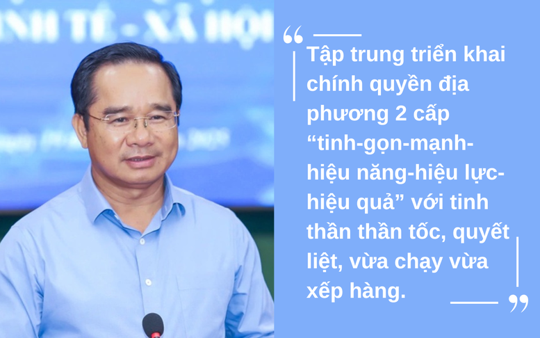 Một là, tập trung triển khai chính quyền địa phương 2 cấp "tinh-gọn-mạnh-hiệu năng-hiệu lực-hiệu quả" với tinh thần thần tốc, quyết liệt, vừa chạy vừa xếp hàng. Đây là mục tiêu tổng quát, hướng đến việc xây dựng bộ máy chính quyền địa phương hoạt động hiệu quả, giảm bớt các tầng nấc trung gian, tinh giản biên chế, tăng cường năng lực và khả năng đáp ứng yêu cầu, nhiệm vụ trong tình hình mới; trong đó: