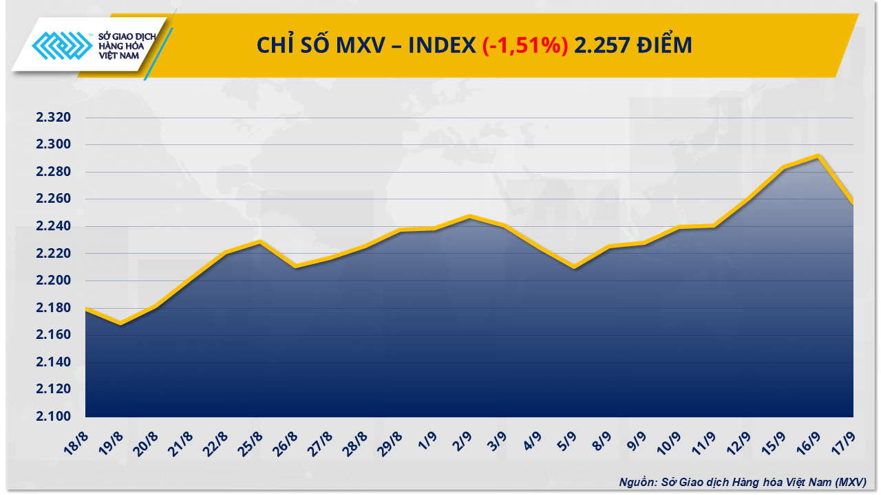 Về tiến độ sản xuất, công tác thu hoạch cà phê của các xã viên thuộc hợp tác xã lớn nhất Brazil - Cooxupé đã hoàn thành 98,9% diện tích tính đến ngày 12/9. Khảo sát ngành cho biết, việc thu hoạch tại khu vực Matas de Minas đã hoàn tất, trong khi các vùng sản xuất khác đang ở giai đoạn cuối: Nam Minas đạt 99,3%, Cerrado Mineiro hoàn thành 98,2% và Média Mogiana của bang São Paulo đạt 98,9%. Áp lực nguồn cung đang dần được tháo gỡ đã khiến giá cà phê chịu sức ép lớn trong phiên hôm qua.