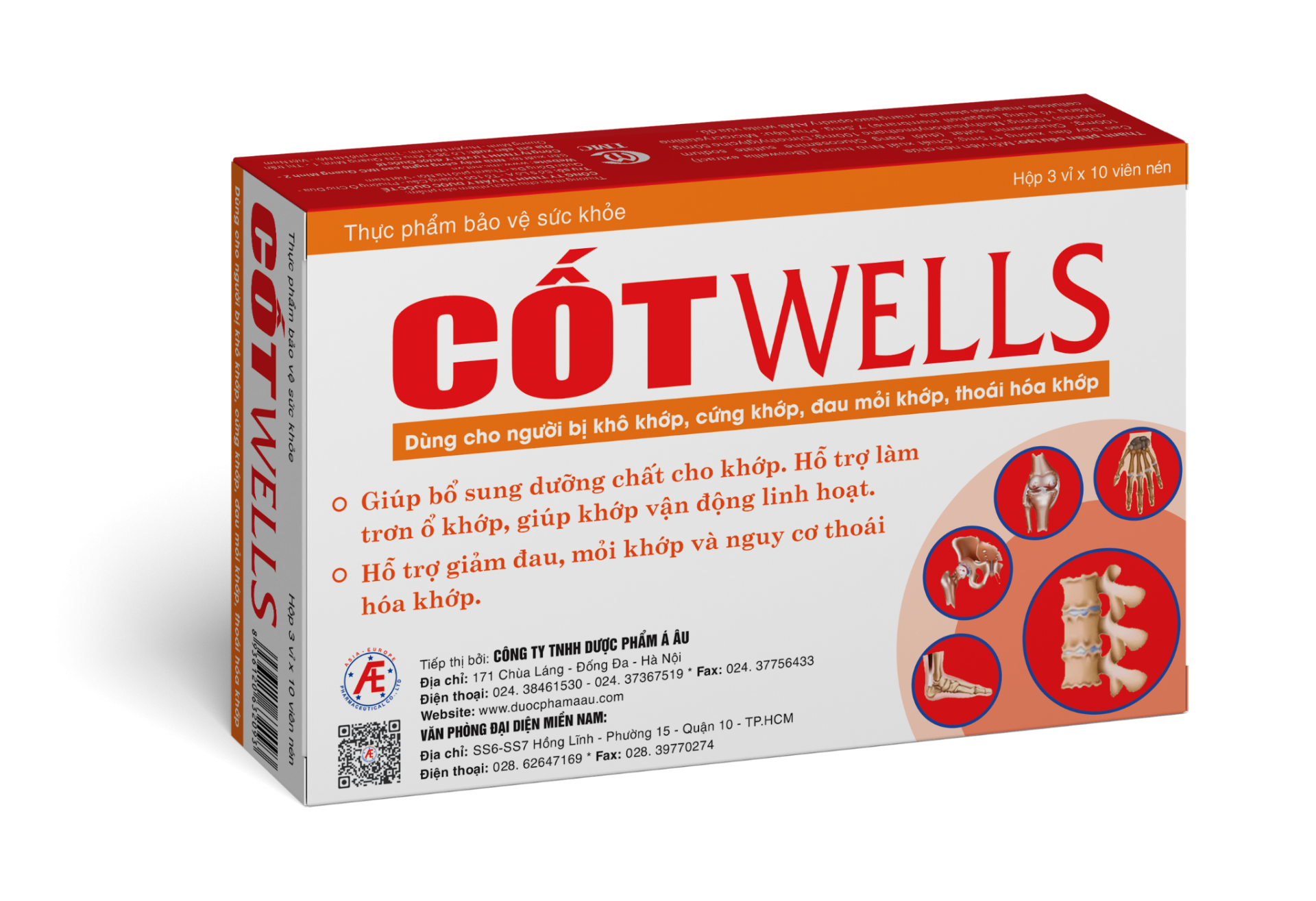 Thực phẩm bảo vệ sức khỏe CốtWells - Dùng cho người bị khô khớp, cứng khớp, đau mỏi khớp ![]() Với thành phần chính là màng vỏ trứng, TPBVSK CốtWells hỗ trợ làm trơn ổ khớp, giúp khớp vận động linh hoạt. Hỗ trợ giảm đau, mỏi khớp và nguy cơ thoái hóa khớp. Sản phẩm dùng cho: ● Người bị khô khớp, cứng khớp, đau mỏi khớp. ● Người thoái hóa khớp, người lao động nặng nhọc nguy cơ gây thoái hóa khớp. Hướng dẫn sử dụng ● Uống 4 viên/ngày, chia 2 lần ● Nên uống trong bữa ăn hoặc sau khi ăn 1 giờ Tiếp thị và phân phối bởi: Công ty TNHH Dược phẩm Á Âu. Á Âu: Địa chỉ an tâm, tin cậy, chất lượng suốt 20 năm Địa chỉ: Số 171 Chùa Láng - Phường Láng Thượng - Quận Đống Đa - Hà Nội ĐT: 024.38461530 - 028.62647169 Số GPQC: 2043/2019/ATTP-XNQC *Thực phẩm này không phải là thuốc và không có tác dụng thay thế thuốc chữa bệnh. *Sản phẩm có bán tại các nhà thuốc trên toàn quốc. |