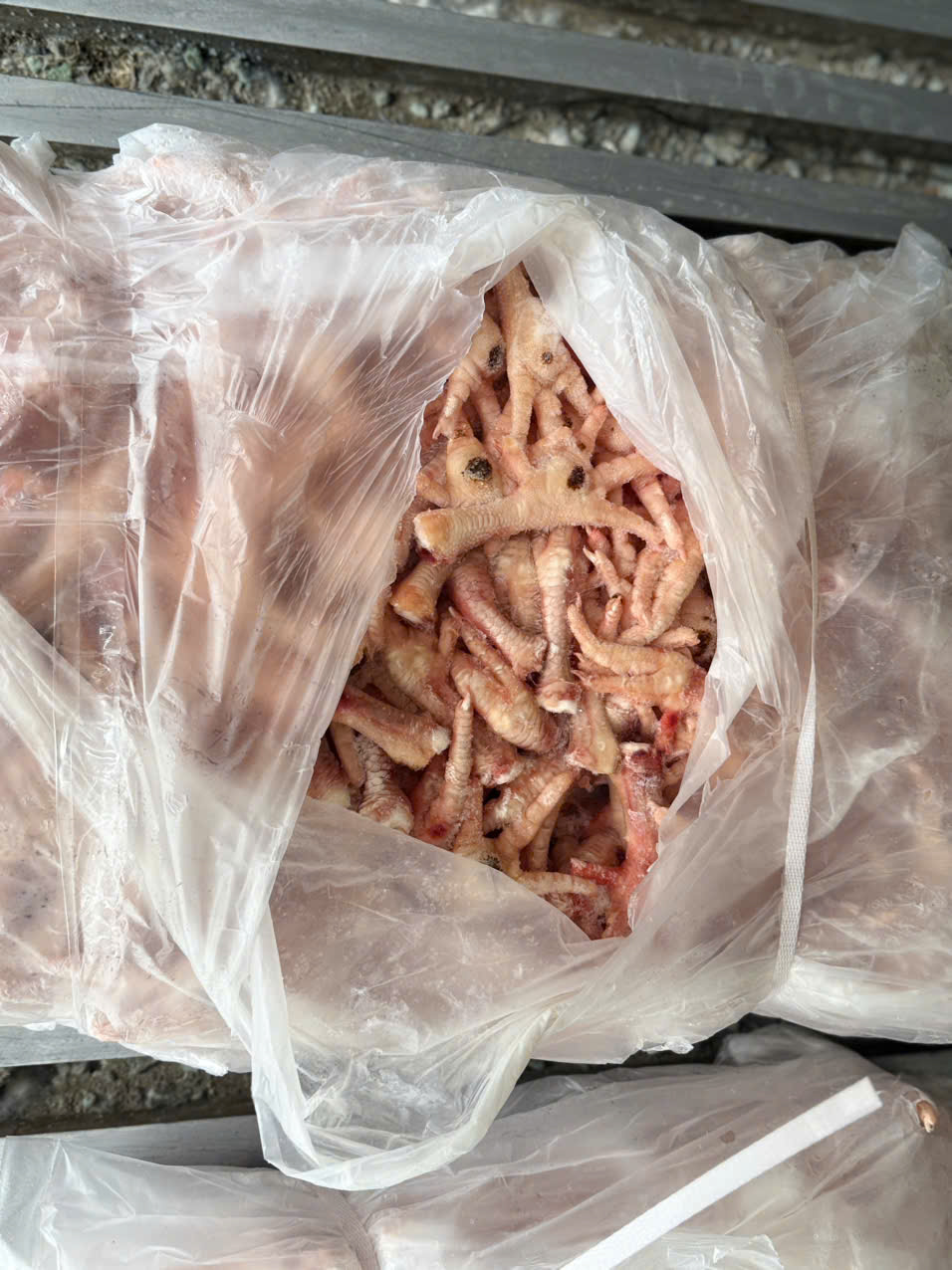 Sáng 26/5/2025, tại lô F20, Khu công nghiệp Đông Phố Mới, xã Vạn Hòa, thành phố Lào Cai, Đội QLTT số 05 thực hiện khám container, phát hiện 1.560kg chân gà đông lạnh không nhãn mác, không thể hiện xuất xứ, không có số lô sản xuất.