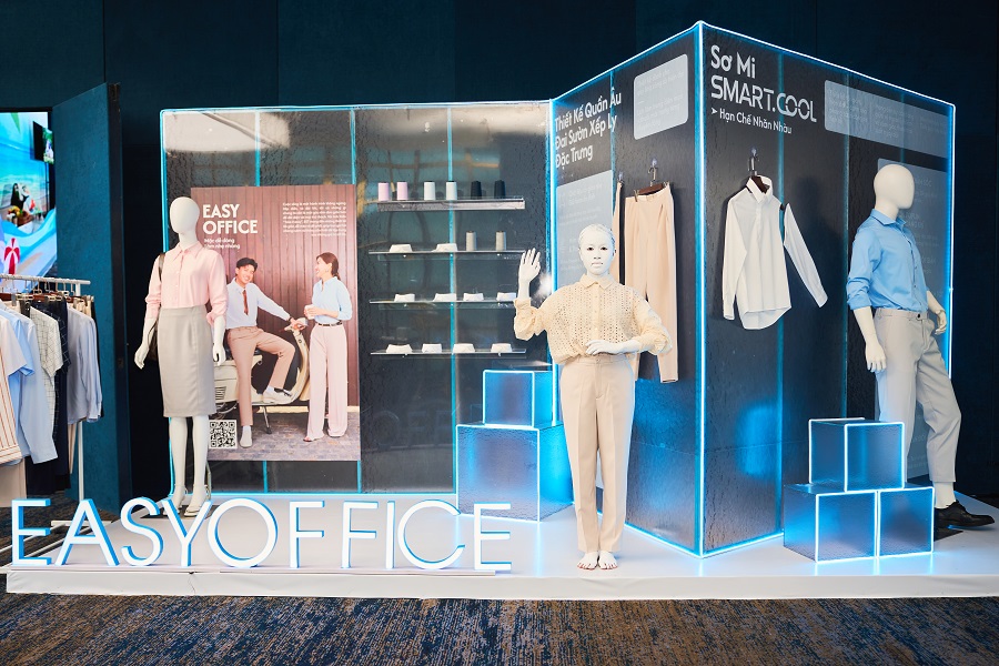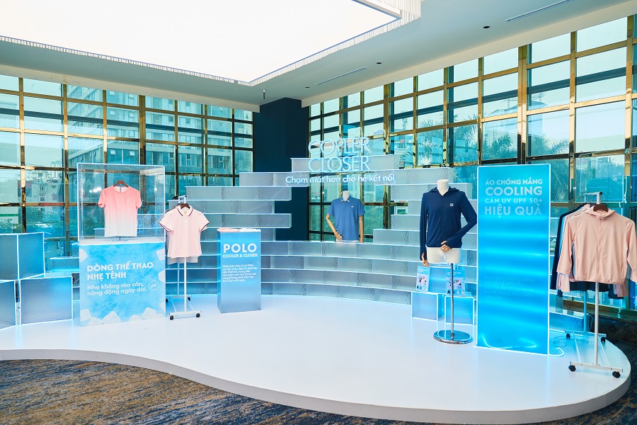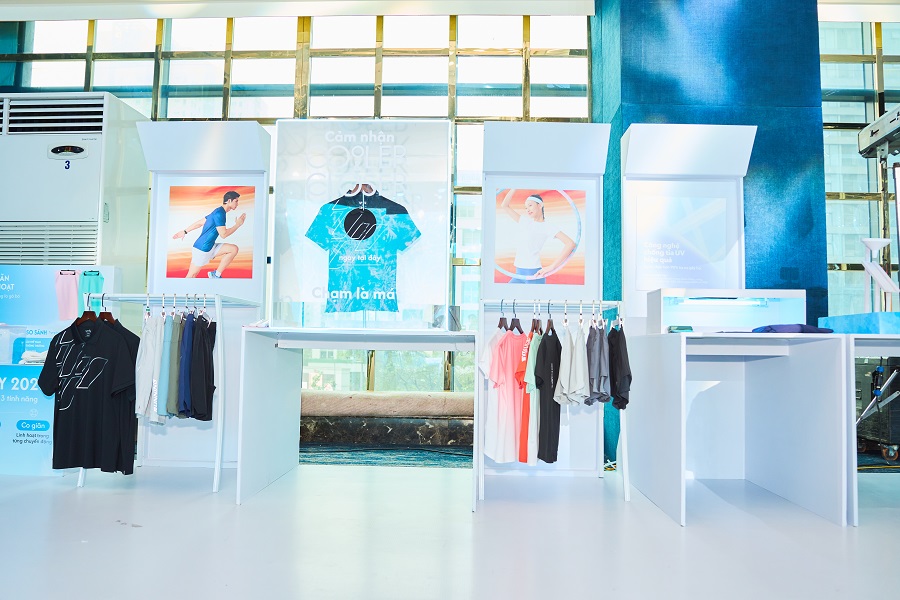 Điểm đặc biệt của sự kiện là khu vực trải nghiệm sản phẩm, nơi khách mời có thể trực tiếp kiểm chứng các đặc tính của trang phục thông qua các hoạt động tương tác như kiểm tra độ nhẹ, độ co giãn và cảm nhận thực tế khi mặc. Cách tiếp cận này cho thấy xu hướng mới của ngành thời trang: không chỉ dừng lại ở thiết kế, mà còn cần được kiểm chứng bằng trải nghiệm thực tế của người dùng.
