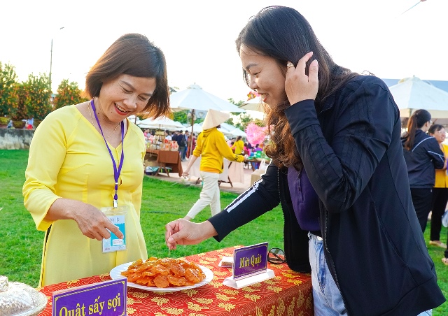 Đến với ngày hội, người dân và khách thập phương không chỉ được thưởng lãm vẻ đẹp của những thế quất độc đáo, các sản phẩm OCOP đặc trưng mà còn hòa mình vào không gian văn hóa ngày Tết Việt với hội chợ ẩm thực “Hương vị ngày xuân”, giao lưu hô hát bài chòi và thưởng thức các thức uống chế biến từ trái quất.