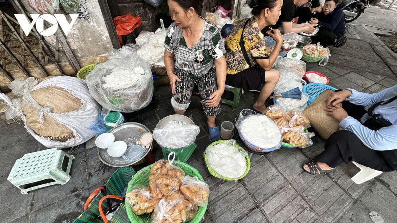 Những rổ bún được đặt ngay dưới nền đất, không che đậy rất mất vệ sinh (Ảnh: VOV)