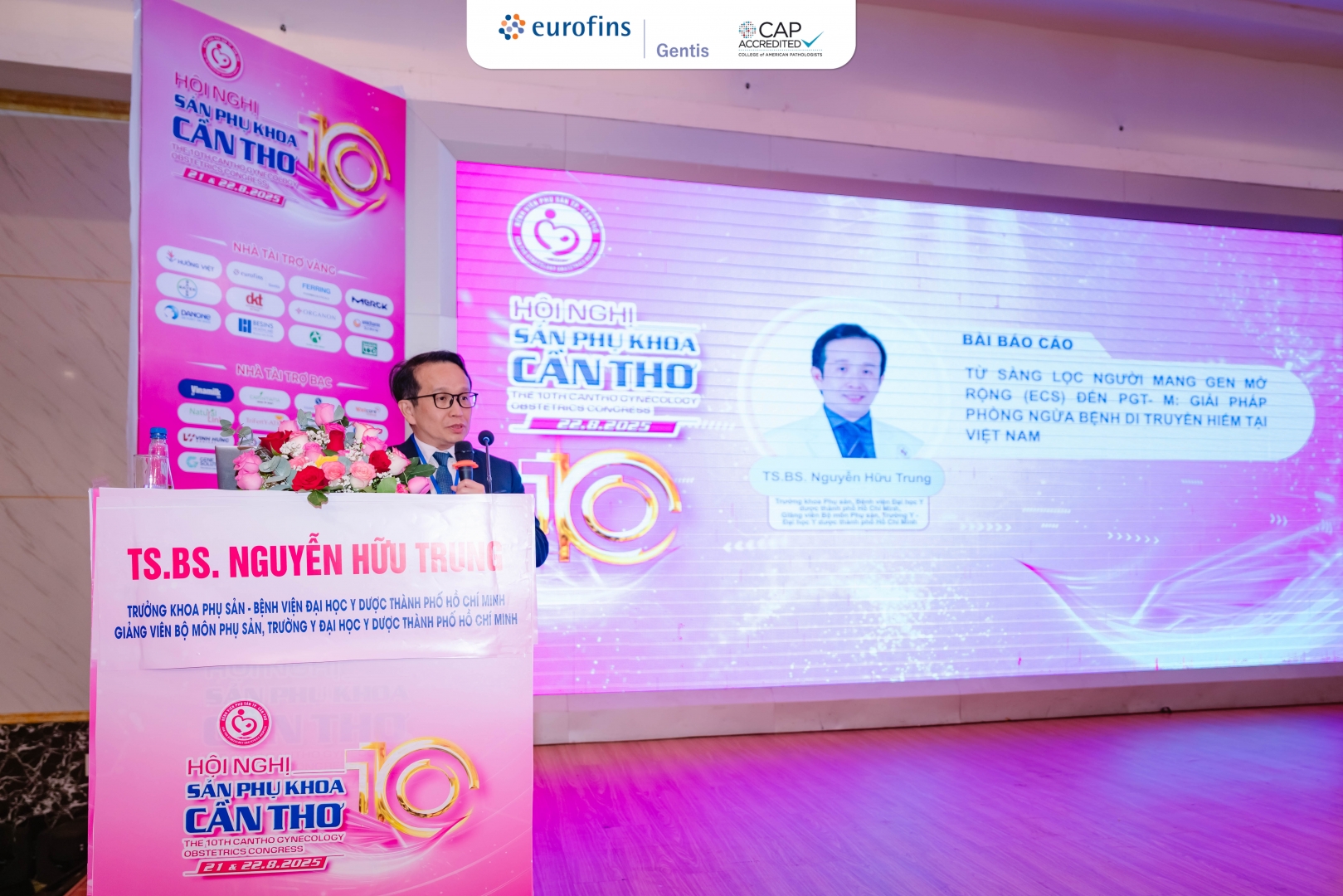 Trong khuôn khổ hội nghị, GENTIS vinh dự đồng hành cùng hai báo cáo nổi bật đến từ BS.CKI Nguyễn Vạn Thông (Trưởng khoa Di truyền Y học, BV Hùng Vương) và TS.BS Nguyễn Hữu Trung (Trưởng khoa Phụ sản, Bệnh viện Đại học Y Dược TP.HCM), thể hiện rõ vai trò tiên phong của GENTIS trong nghiên cứu và phát triển các xét nghiệm gen ứng dụng tại Việt Nam.