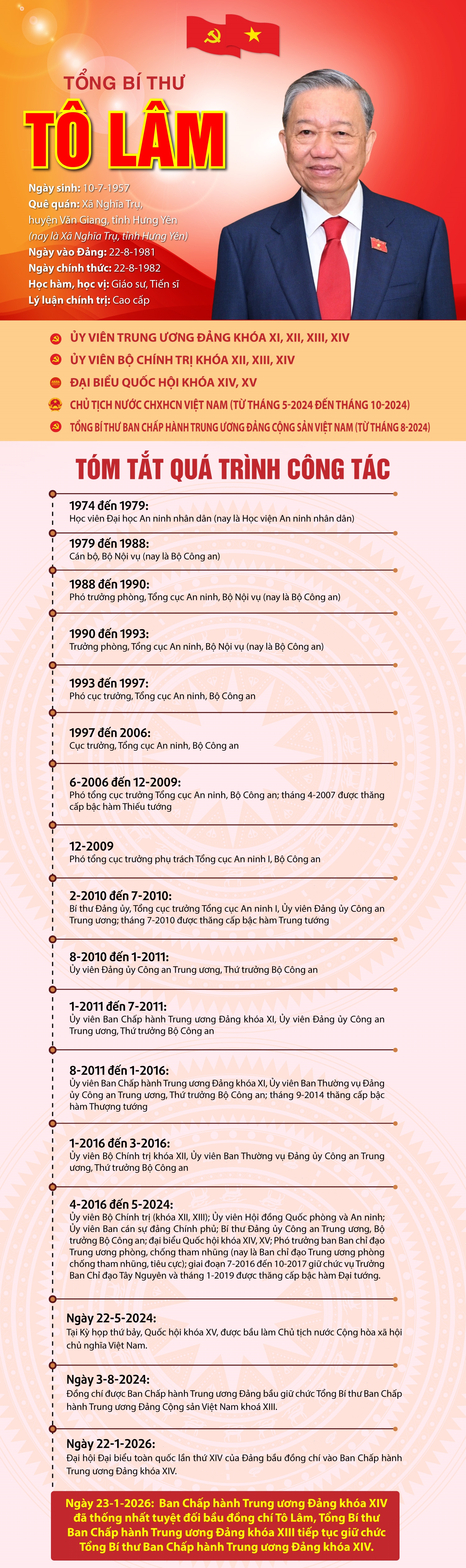 Sau 5 ngày làm việc khẩn trương, nghiêm túc, khoa học với phương châm "Đoàn kết - Dân chủ - Kỷ cương - Đột phá - Phát triển" và ý thức trách nhiệm cao trước Đảng, Nhân dân và đất nước, chiều 23/1, tại Trung tâm Hội nghị Quốc gia (Hà Nội), Đại hội đại biểu toàn quốc lần thứ XIV của Đảng đã thành công rất tốt đẹp.