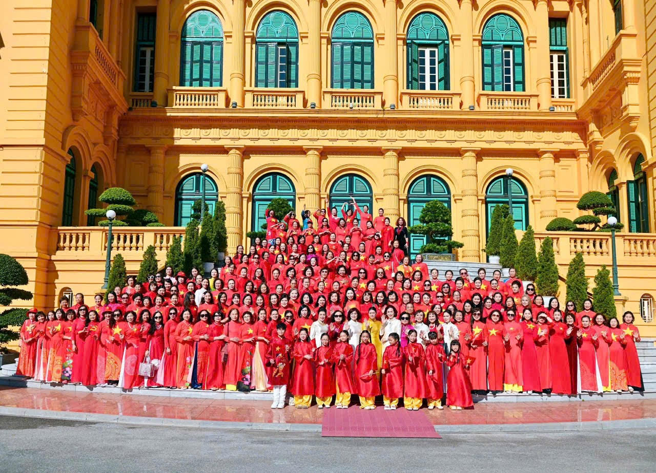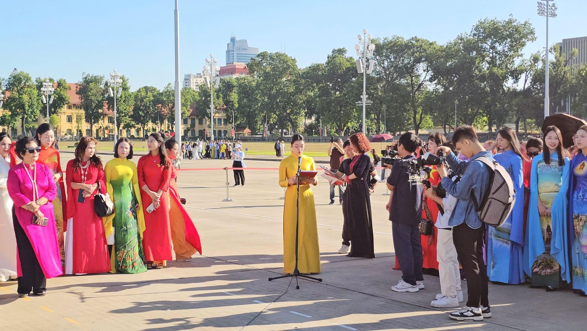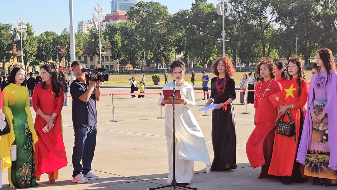 Cùng toàn thể các nữ lãnh đạo, nữ trí thức, doanh nhân, chuyên gia, nhà khoa học; các phó chủ tịch hội và hơn 300 phụ nữ, nữ doanh nhân đang hội tụ nơi đây, giữa Quảng trường Ba Đình Hà Nội, để được cùng nhau Báo công dâng Bác trong buổi sáng mùa thu ý nghĩa.