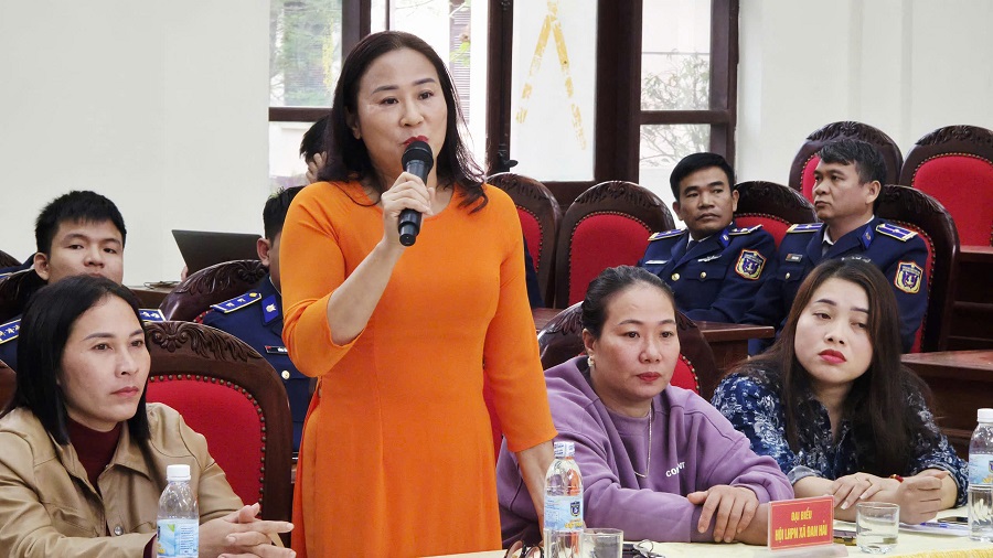 Trong phần thảo luận, đại biểu các trường học và đoàn thể cơ sở đã chia sẻ nhiều tình huống tiêu biểu. Trường Mầm non Xuân Phổ cảnh báo nguy cơ trẻ nhỏ vô tình tiếp xúc nội dung độc hại qua các ứng dụng giải trí. Trường THCS Phổ Hải phản ánh tình trạng học sinh bị dụ kết bạn ảo, bị yêu cầu gửi ảnh riêng tư hoặc tham gia nhóm trò chuyện không lành mạnh. Hội Liên hiệp phụ nữ xã Đan Hải nêu rõ hiện tượng một số phụ nữ có chồng đi làm xa bị lợi dụng tình cảm, bị lừa chuyển tiền cho đối tượng xấu. Đoàn Thanh niên xã Tiên Điền thông tin nhiều trường hợp thanh niên bị mất tài khoản ngân hàng, Facebook, Zalo do truy cập liên kết giả mạo hoặc cài đặt ứng dụng nguy hại.