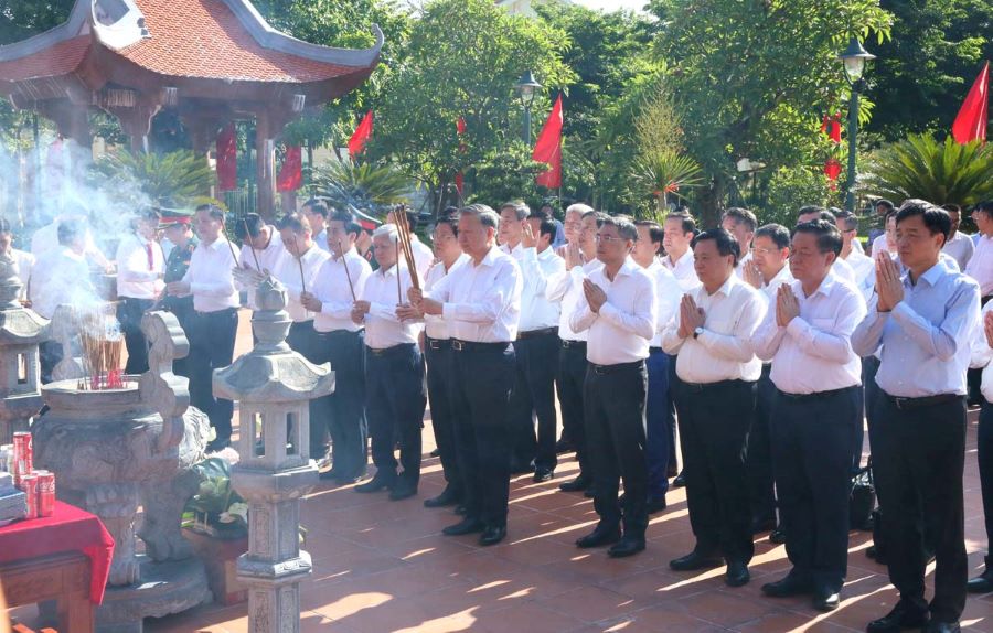 Trong không khí trang nghiêm và thành kính, đồng chí Tổng Bí thư Tô Lâm và đoàn công tác xúc động dâng nén tâm hương tưởng nhớ Chủ tịch Hồ Chí Minh muôn vàn kính yêu, lãnh tụ thiên tài của Đảng và nhân dân ta, anh hùng giải phóng dân tộc, danh nhân văn hóa thế giới và bày tỏ lòng tri ân sâu sắc đối với các anh hùng liệt sỹ đã anh dũng hy sinh vì sự nghiệp cách mạng vẻ vang của dân tộc.