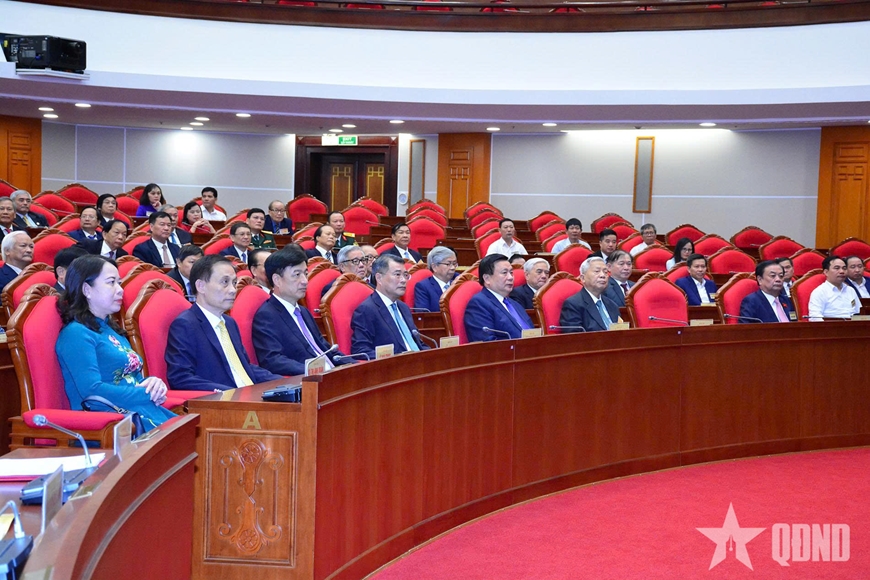 Tổng Bí thư Tô Lâm cùng các đồng chí lãnh đạo Đảng, Nhà nước: Phạm Minh Chính, Ủy viên Bộ Chính trị, Thủ tướng Chính phủ; Trần Cẩm Tú, Ủy viên Bộ Chính trị, Thường trực Ban Bí thư; Đỗ Văn Chiến, Ủy viên Bộ Chính trị, Bí thư Trung ương Đảng, Chủ tịch Ủy ban Trung ương Mặt trận Tổ quốc Việt Nam; Nguyễn Trọng Nghĩa, Ủy viên Bộ Chính trị, Bí thư Trung ương Đảng, Trưởng Ban Tuyên giáo và Dân vận Trung ương dự và chủ trì Hội nghị.