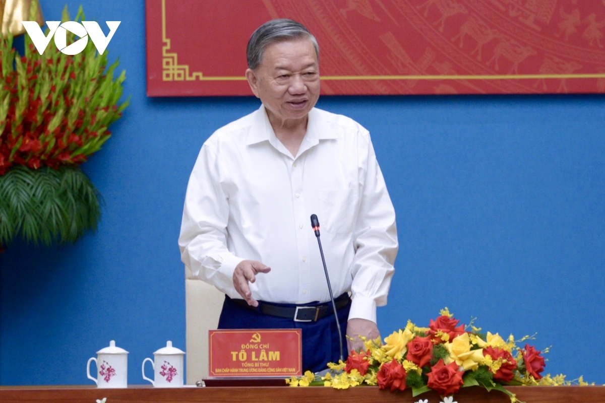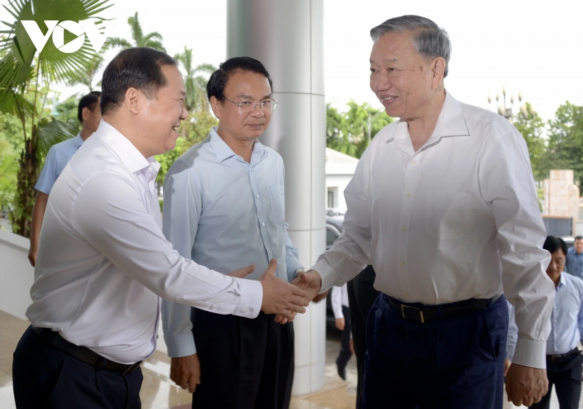 Sáng 10/6, tại thành phố Việt Trì, Tổng Bí thư Tô Lâm chủ trì buổi làm việc với Ban thường vụ tỉnh uỷ các tỉnh Phú Thọ, Vĩnh Phúc và Hoà Bình về tình hình và kết quả triển khai thực hiện các Nghị quyết, Kết luận của Trung ương; việc sắp xếp tổ chức bộ máy của địa phương (kể cả việc hợp nhất, sáp nhập); công tác ổn định tình hình mọi mặt của địa phương, công tác quốc phòng, an ninh; việc lãnh đạo thực hiện nhiệm vụ tăng trưởng kinh tế ở địa phương; công tác an sinh xã hội, giảm nghèo, nâng cao đời sống nhân dân và đề xuất, kiến nghị của địa phương.