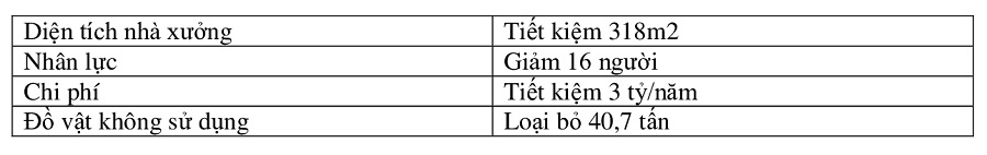 Cụ thể, Toyota đã cử chuyên gia đến các doanh nghiệp để tìm ra những vấn đề đang tồn tại và tiến hành tư vấn, hỗ trợ tại hiện trường. Sau hơn 6 tháng triển khai, chương trình này đã ghi nhận kết quả rất khả quan về các hoạt động cải tiến 5S, An toàn lao động và Kaizen trong nhiều lĩnh vực như giảm tồn kho và diện tích nhà xưởng, tối đa hóa chi phí, tăng năng suất cũng như cải thiện môi trường làm việc của người lao động... ở cả 5 nhà cung cấp với một số kết quả nổi bật như sau: