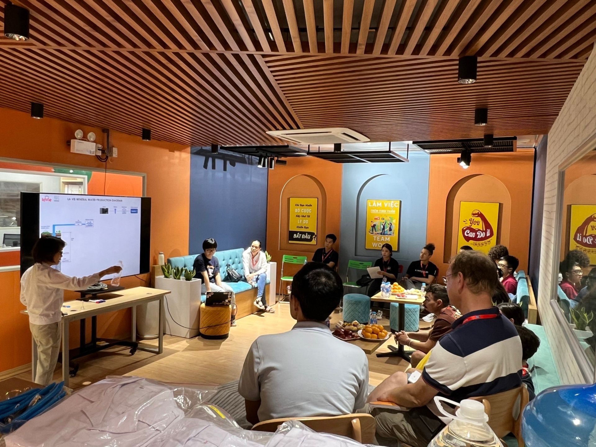 Đại diện La Vie giới thiệu về quy trình sản xuất nước khoáng đóng chai