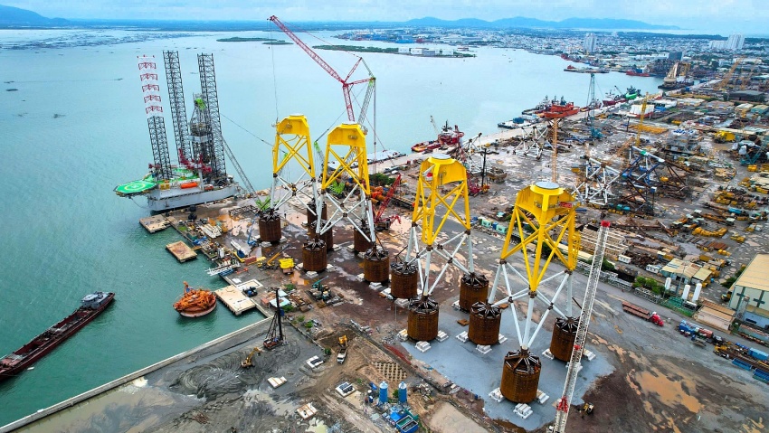 Một góc đại công trường chế tạo chân đế điện gió ngoài khơi ở Cảng PTSC