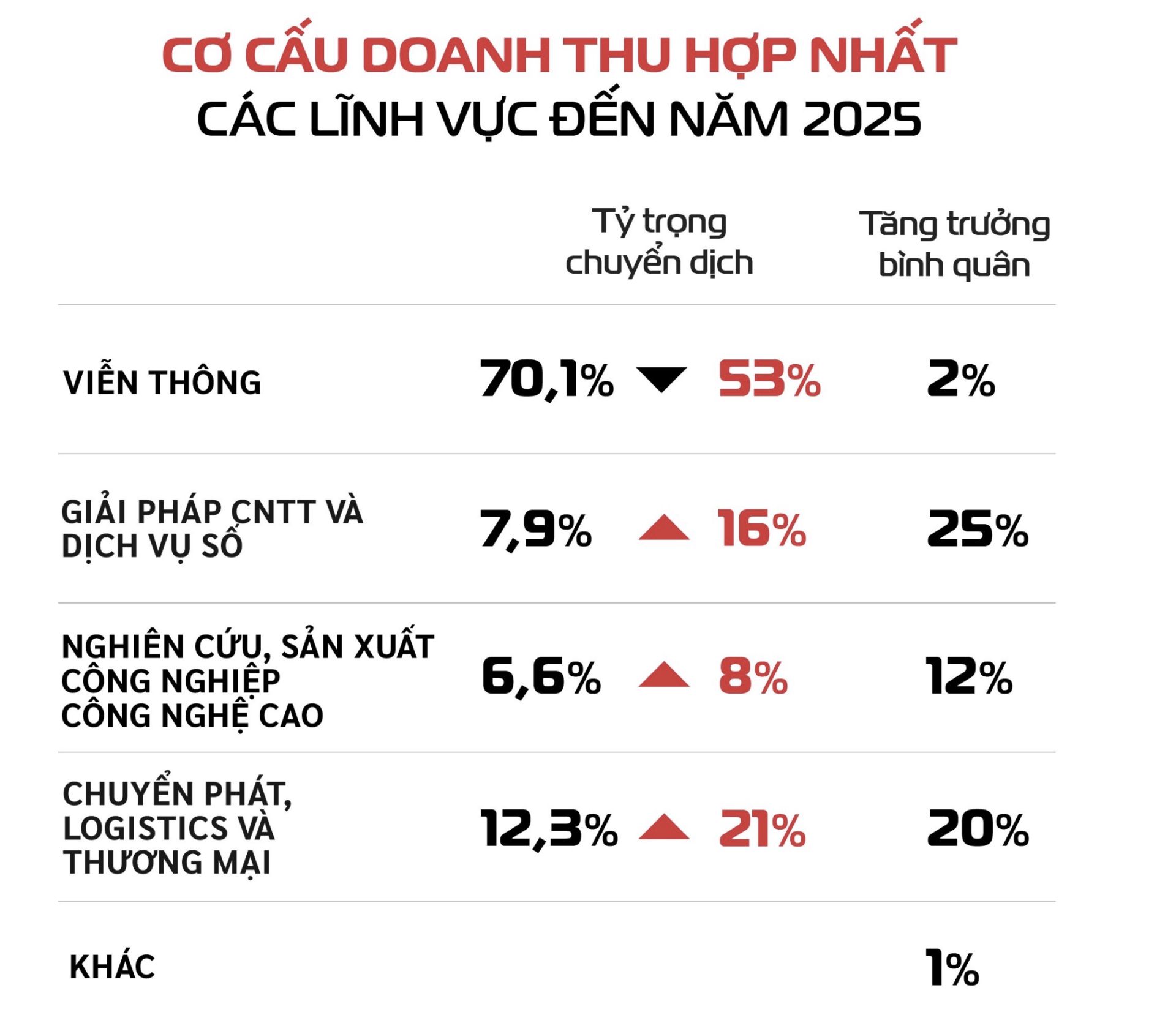 Viettel đã chuyển đổi từ một nhà cung cấp dịch vụ viễn thông truyền thống sang một tập đoàn công nghệ, tập trung vào các lĩnh vực như công nghệ thông tin, an ninh mạng, không gian mạng, tài chính số, truyền thông và giải trí số.