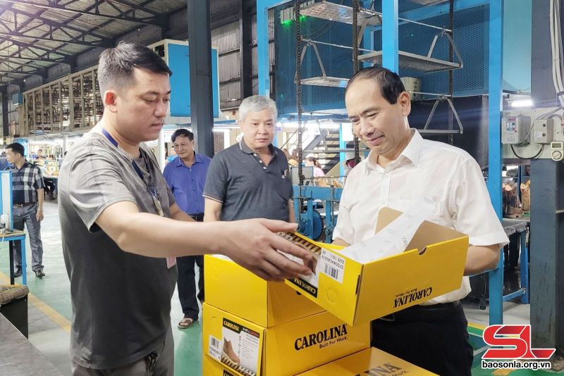 Lãnh đạo Hiệp hội Doanh nghiệp tỉnh thăm khu vực sản xuất của Xí nghiệp Giầy Phù Yên 2, huyện Phù Yên