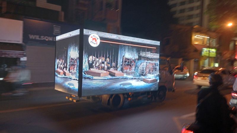 Hành trình xuyên Việt của FOUR PAWS sử dụng xe tải có gắn màn hình LED di chuyển và đỗ tại 3 thành phố chính: TP. Hồ Chí Minh ngày 31 tháng 5 và 1 tháng 6, Đà Nẵng ngày 2 tháng 6 và Hà Nội ngày 7 và 8 tháng 6. Trong hành trình và tại các điểm dừng, bằng các thông điệp và hình ảnh trình chiếu trên màn hình LED, FOUR PAWS mong muốn nâng cao nhận thức của người dân về những vấn nạn do việc buôn bán thịt chó, mèo gây ra; và kêu gọi sự ủng hộ của cộng đồng để sớm chấm dứt việc buôn bán này tại Việt Nam. Ở các điểm dừng, FOUR PAWS đã nhận được nhiều sự quan tâm và ủng hộ của người dân địa phương.