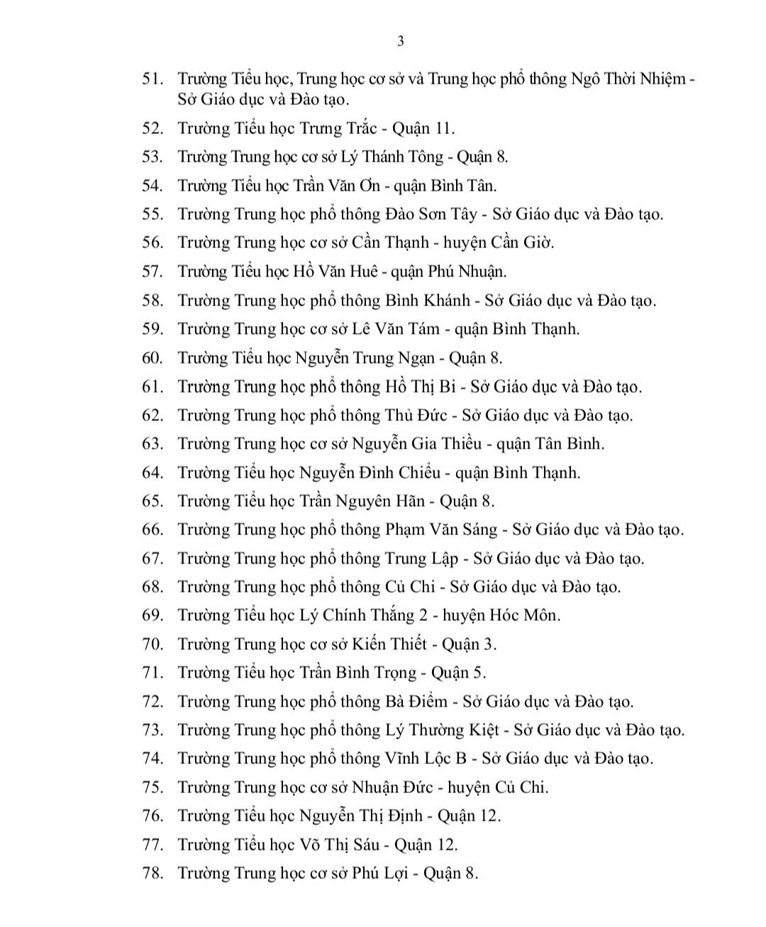 Theo đó, 100 trường học số đầu tiên được UBND TP. Hồ Chí Minh công nhận là những trường tiểu học, THCS, THPT đạt đủ 6 tiêu chuẩn thành phần.