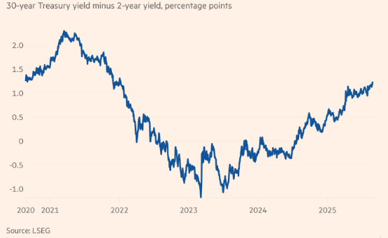 Động thái này đã đẩy khoảng cách giữa lợi suất trái phiếu dài hạn và ngắn hạn gần đến mức rộng nhất trong ba năm, phản ánh kỳ vọng của thị trường: Lãi suất ngắn hạn có thể giảm do áp lực chính trị, nhưng lãi suất dài hạn sẽ tăng cao hơn trong tương lai khi Fed buộc phải chống lại lạm phát gia tăng.