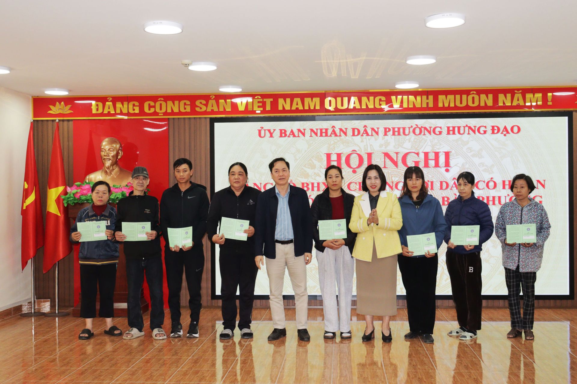 Tại Hội nghị, các đơn vị đã trao tặng 38 sổ BHXH cho người dân có hoàn cảnh khó khăn thuộc hộ cận nghèo trên địa bàn phường Hưng Đạo.