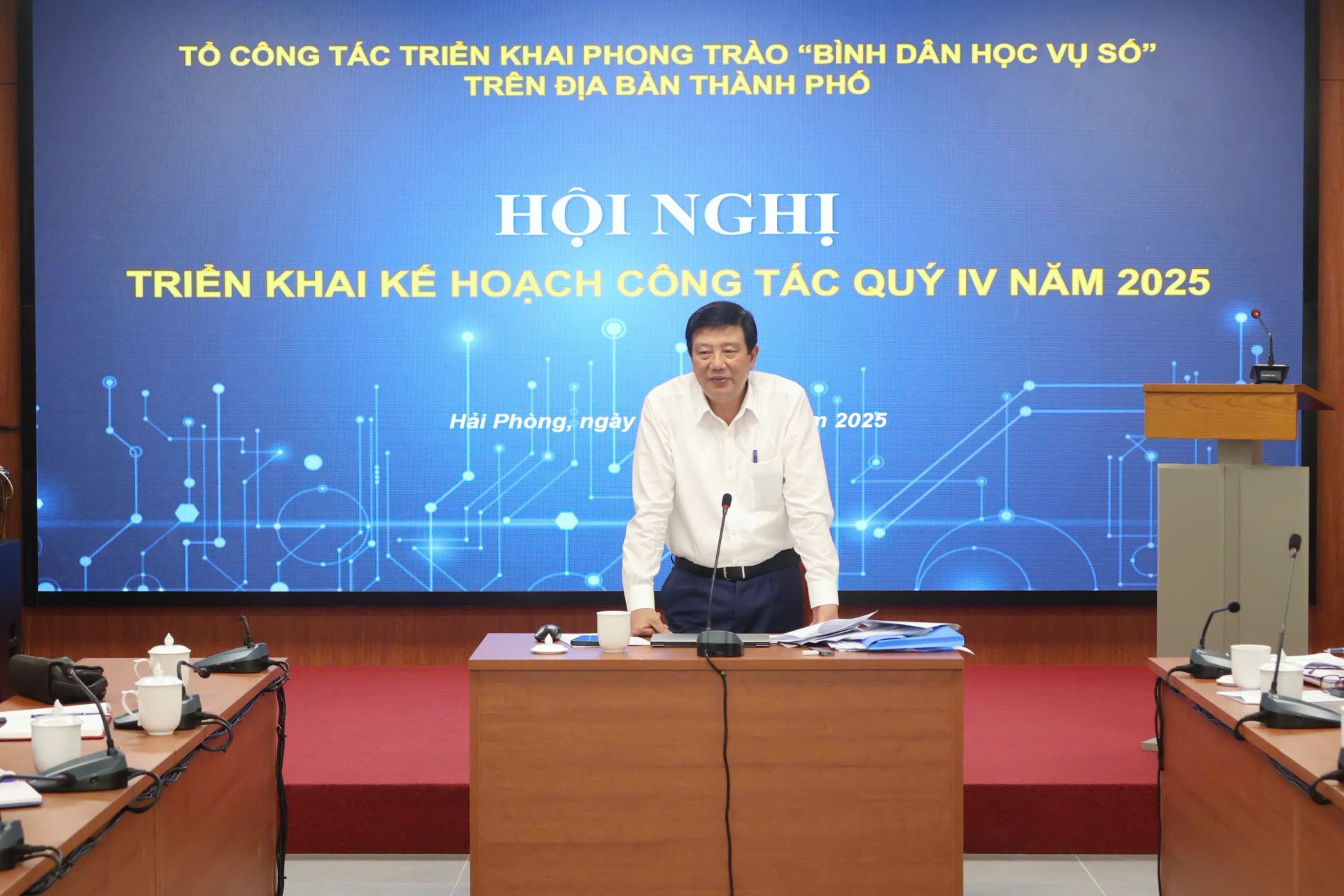 Tại Hội nghị, Ban Tuyên giáo và Dân vận Thành ủy công bố Quyết định của Ban Chỉ đạo thực hiện Nghị quyết số 57-NQ/TW về việc ban hành Quy chế phối hợp và thành lập Tổ Công tác triển khai Phong trào Bình dân học vụ số trên địa bàn thành phố. Quyết định về việc thành lập Tổ giúp việc Tổ công tác triển khai Phong trào Bình dân học vụ số trên địa bàn thành phố, đồng thời trình bày dự thảo báo cáo kết quả triển khai Phong trào quý III/2025; Kế hoạch hoạt động của Tổ công tác triển khai Phong trào năm 2025.