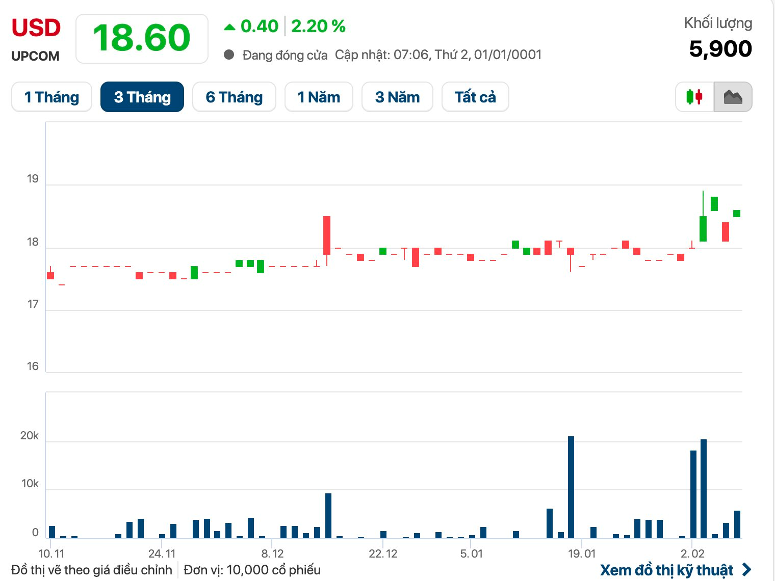 Trên thị trường chứng khoán, cổ phiếu USD kết phiên 6/2 có giá là 18.600 đồng/cp.