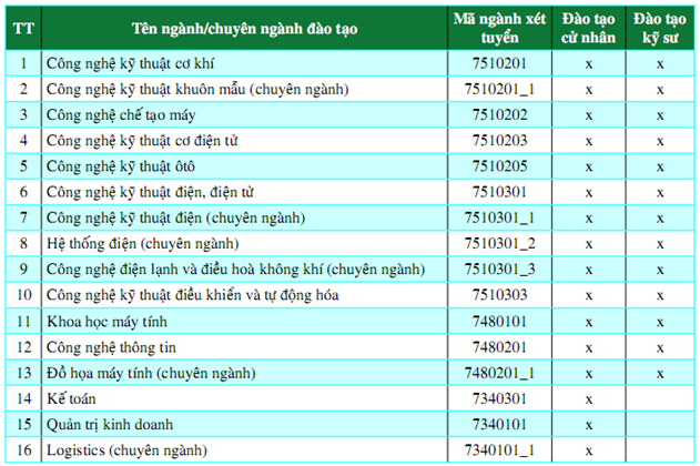 Năm 2025, Nhà trường tuyển sinh hệ đại học chính quy, dự kiến như sau: