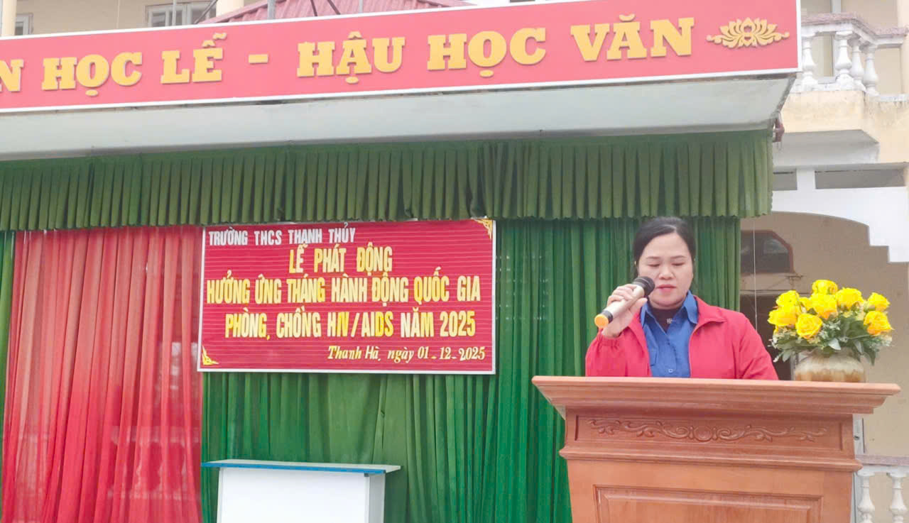 Đại diện giáo viên và học sinh nhà trường cũng đã phát biểu cam kết học tập, tìm hiểu và lan tỏa thông điệp “Phòng, chống HIV/AIDS – đừng kỳ thị, hãy yêu thương và sẻ chia”, thể hiện tinh thần đoàn kết và trách nhiệm đối với cộng đồng.