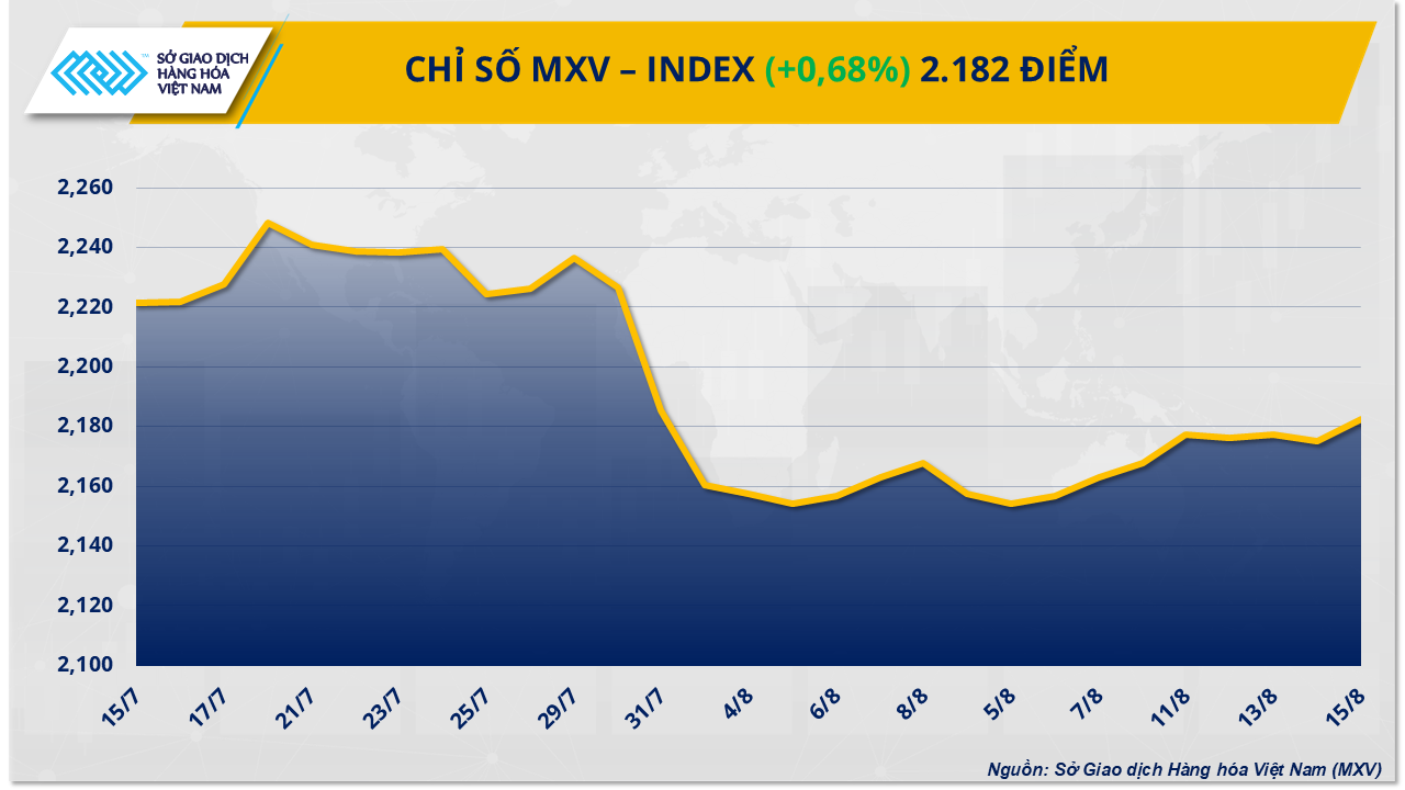 Trong kỳ từ ngày 8 đến 14/8, giá cà-phê nhân xô trên thị trường nội địa ghi nhận mức tăng mạnh. Theo cập nhật đến ngày 14/8, giá cà-phê nhân xô được các doanh nghiệp thu mua dao động quanh ngưỡng 111.000-112.000 đồng/kg, trong khi các kho cần hàng phải chấp nhận trả từ 113.000-114.000 đồng/kg mới có thể mua được. Nguyên nhân chủ yếu xuất phát từ áp lực nguồn cung khan hiếm, khi lượng tồn kho cả trong nước lẫn trên toàn cầu đều đang ở mức thấp.