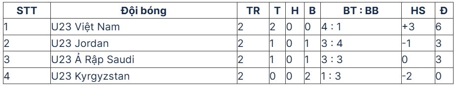 - Nếu U23 Jordan hòa hoặc thua U23 Kyrgyzstan, thì U23 Việt Nam và U23 Saudi Arabia sẽ là hai đội đi tiếp, không cần xét thêm tiêu chí phụ.