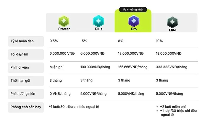 Đặc biệt, chủ thẻ đạt mức chi tiêu trung bình theo gói sẽ được hoàn toàn bộ phí hội viên - đảm bảo lợi ích thực tế cho người dùng chi tiêu đều đặn.