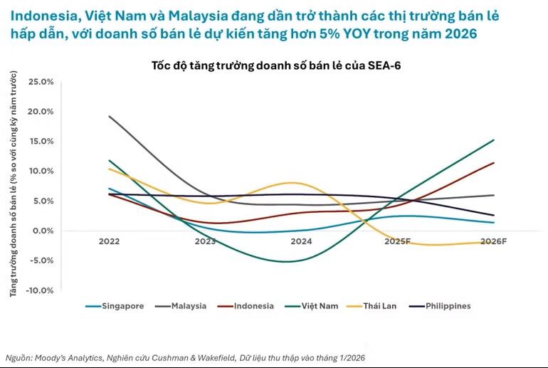 Nhìn chung, năm 2026, nền kinh tế Đông Nam Á được dự báo tăng trưởng 4,3%, tiếp tục duy trì vị thế là một trong những khu vực tăng trưởng nhanh nhất thế giới. Tổng tiêu dùng cá nhân tại Đông Nam Á (không bao gồm Singapore) được kỳ vọng đạt 5 nghìn tỷ USD vào năm 2035, với tốc độ tăng trưởng khoảng 8% mỗi năm.