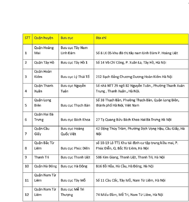 Danh sách bưu cục Viettel Post cung cấp dịch vụ hành chính công: