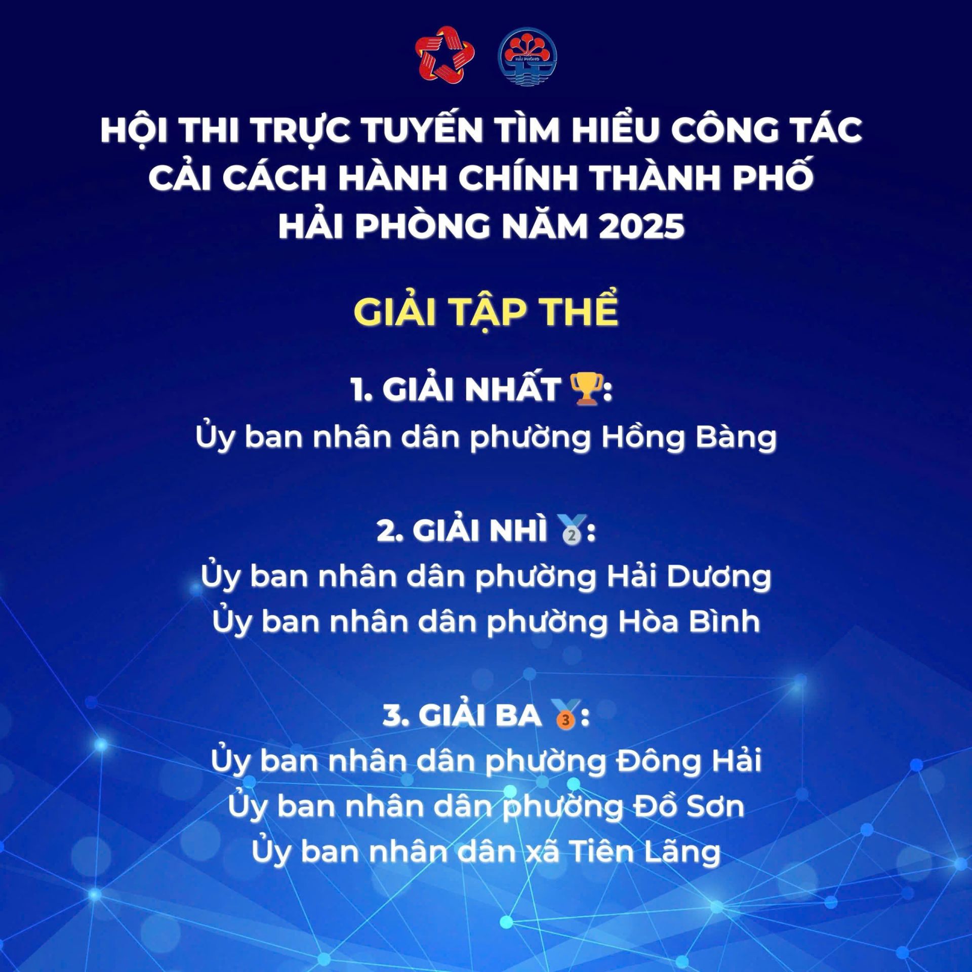 Năm 2025 là năm thứ ba liên tiếp tổ chức Hội thi trực tuyến tìm hiểu công tác CCHC thành phố Hải Phòng. Hội thi gồm 2 phần thi: Một là thi trắc nghiệm trực tuyến tìm hiểu chủ trương của Đảng, chính sách, pháp luật của Nhà nước và các văn bản của Trung ương, của thành phố liên quan đến công tác CCHC được tổ chức làm 4 đợt, từ ngày 3 – 28/11/2025. Hai là: Thi xây dựng slogan tuyên truyền về CCHC.