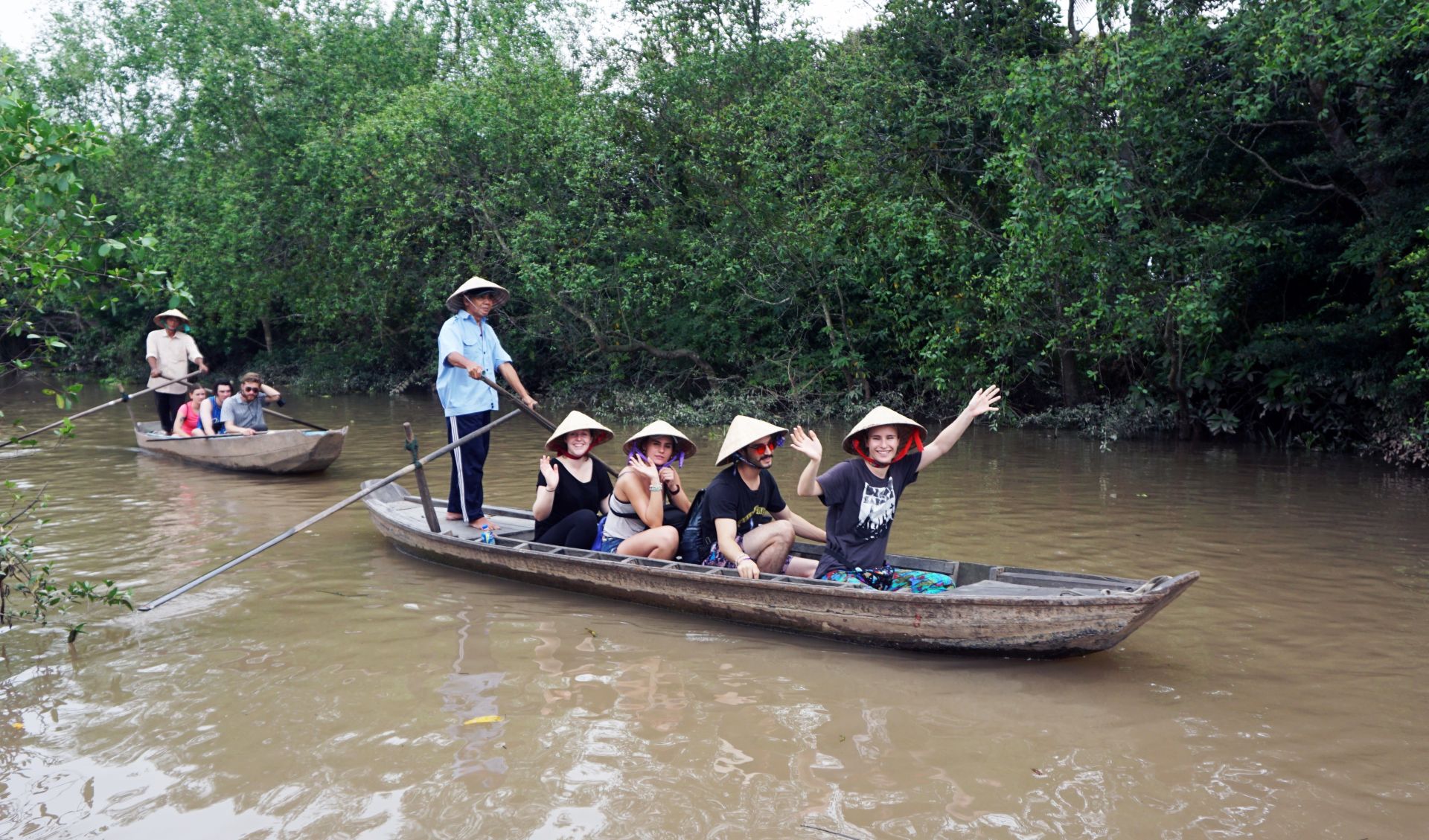 Du khách nước ngoài thích thăm quan sông nước miệt vườnVĩnh Long