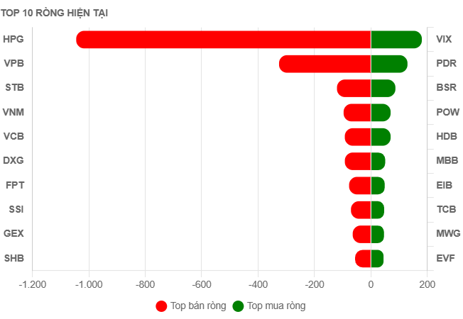 Khối ngoại tiếp tục gây sức ép khi bán ròng phiên thứ 12 liên tiếp với giá trị hơn 1.500 tỷ đồng. Riêng cổ phiếu HPG bị xả tới 1.045 tỷ đồng.