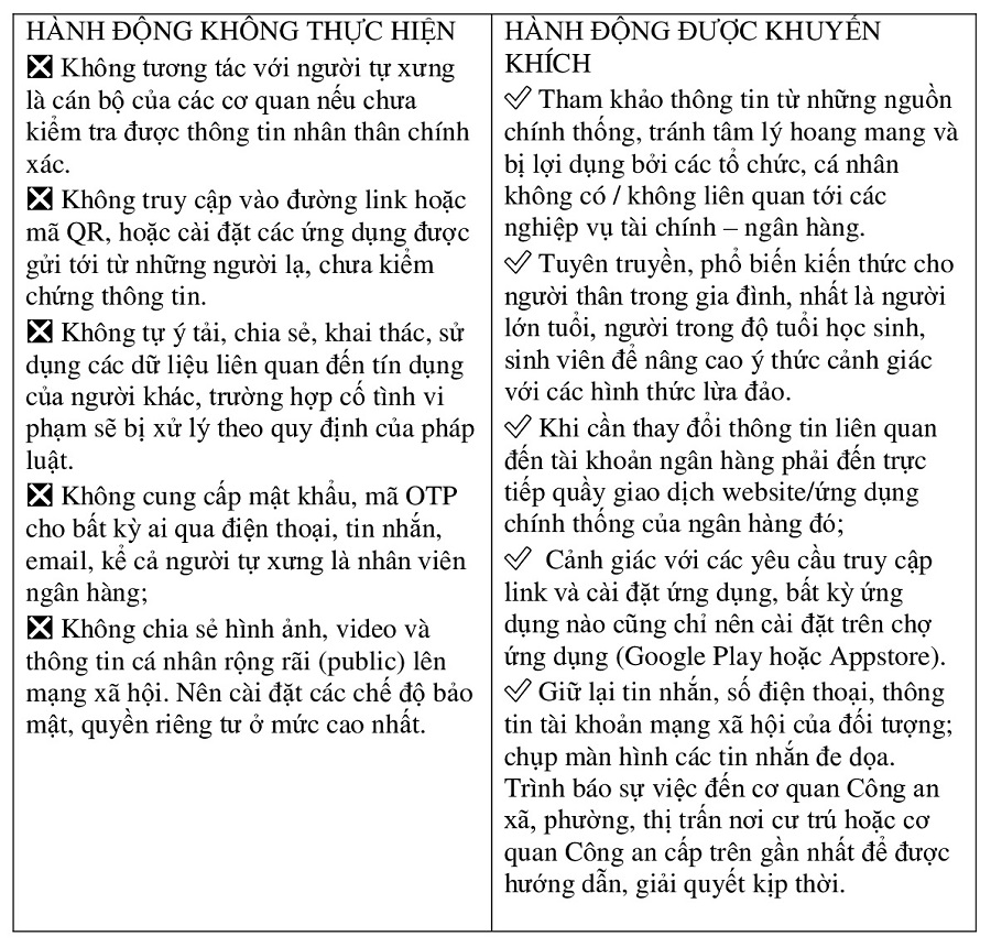 3. Giả danh là nhân viên ngân hàng, thông qua việc nắm bắt tình hình quan hệ tín dụng của khách hàng với các ngân hàng, để yêu cầu tất toán các khoản dư nợ thẻ tín dụng, khoản vay dù chưa đến hạn thanh toán; hoặc để chào mời, chèo kéo dịch vụ mở tài khoản, cho vay nhanh, lãi suất hấp dẫn, thực chất là dẫn dụ tới các app vay nóng trôi nổi, không được cấp phép.