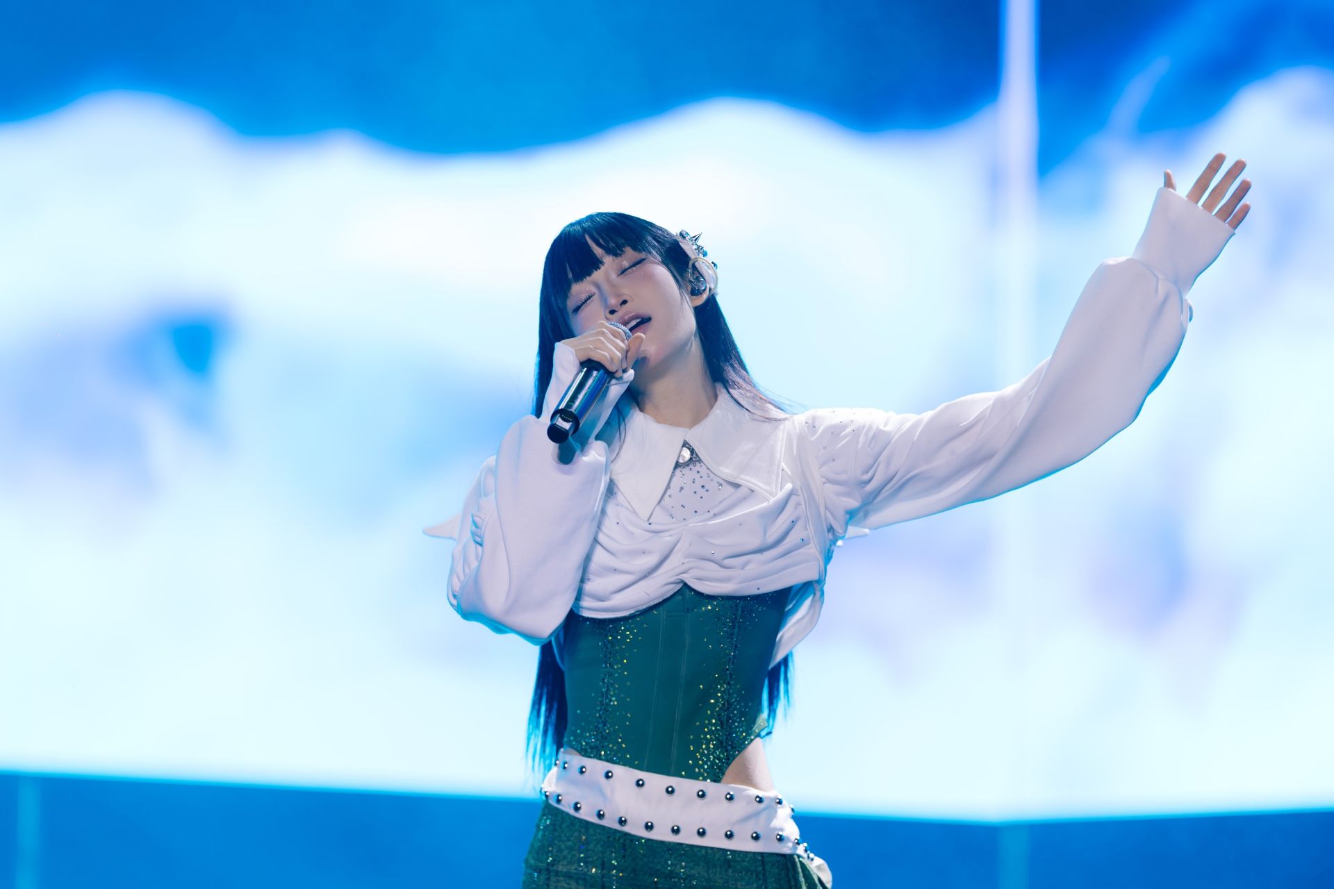 Không khí trở nên mềm mại hơn khi Juky San bước ra sân khấu. Giọng hát trong trẻo của cô mang đến các ca khúc “Người đầu tiên”, “Phải chăng em đã yêu”, “Tin nhắn sau cùng” - những giai điệu quen thuộc của tuổi trẻ. Mưa rơi lách tách, ánh đèn mờ ảo, khán giả khẽ hát theo, có người nhắm mắt, có người cười khẽ, tất cả như cùng trở về với một phiên bản vô lo của chính mình.