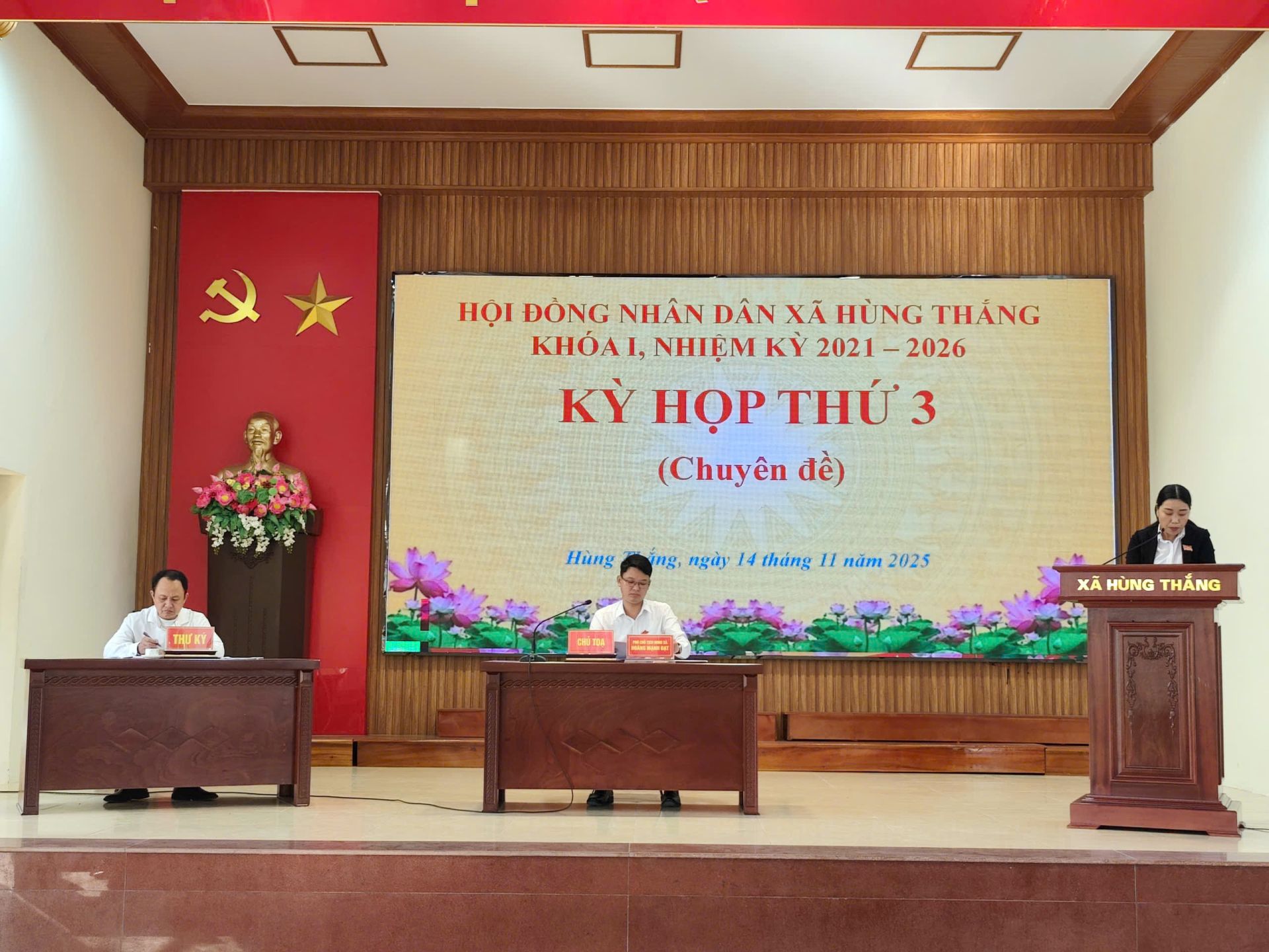 Trên cơ sở các tờ trình, báo cáo và báo cáo thẩm tra của Ủy ban nhân dân xã, Hội đồng nhân dân xã đã thảo luận dân chủ, thống nhất biểu quyết thông qua Nghị quyết điều chỉnh dự toán thu ngân sách nhà nước trên địa bàn; thu, chi và phân bổ ngân sách xã năm 2025 sau sắp xếp, cùng 4 nghị quyết về miễn nhiệm, phê chuẩn và chỉ định các chức danh thuộc thẩm quyền. Các nghị quyết được thông qua là cơ sở quan trọng để xã Hùng Thắng triển khai hiệu quả nhiệm vụ tài chính – ngân sách năm 2025, bảo đảm công tác quản lý ngân sách địa phương đúng quy định, minh bạch và phù hợp với yêu cầu thực tiễn sau sắp xếp đơn vị hành chính.