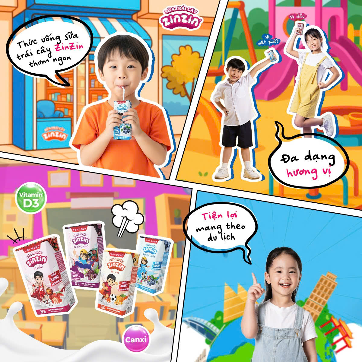 ZinZin không chỉ là thức uống; với nhiều bạn nhỏ, đó còn là một phần ký ức tuổi thơ – gắn với những buổi đến trường, những giờ vui chơi, hay khoảnh khắc cha mẹ ân cần đặt vào tay con một hộp sữa trái cây mát lành.
